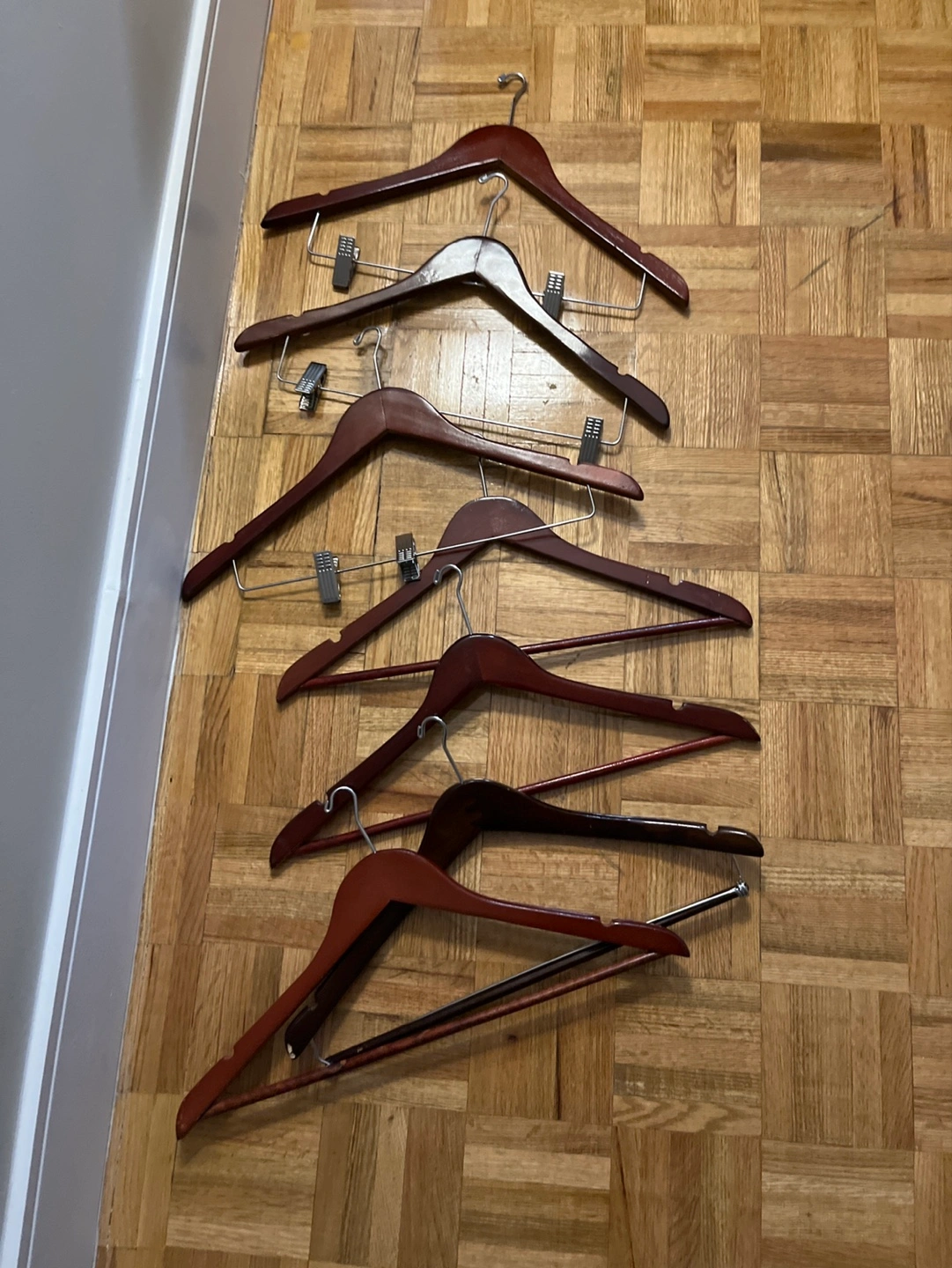 Seven Wooden Hangers with Clips π
