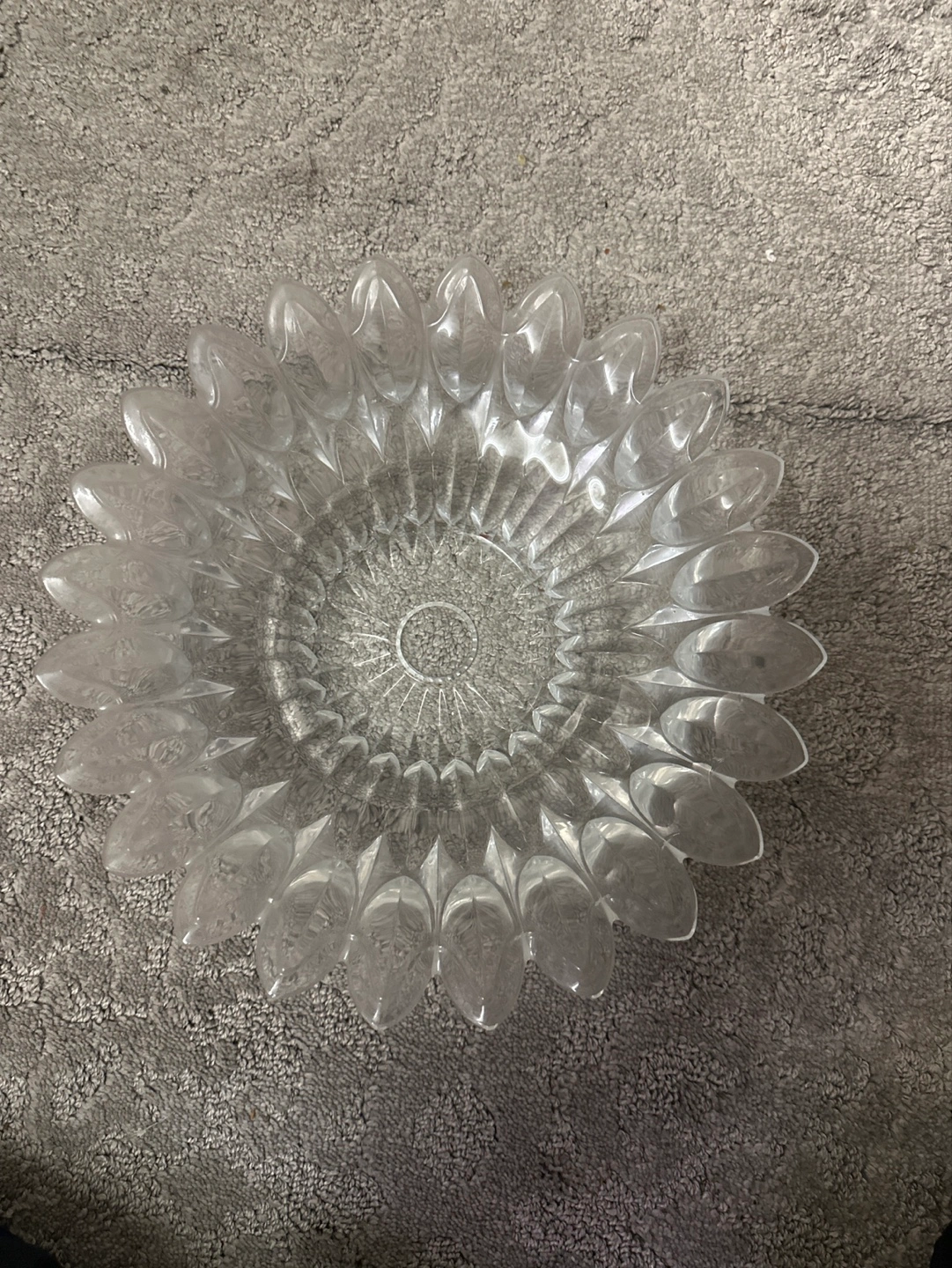 Unique clear glass bowl. Beautiful design. Perfect for displaying fruit or as a decorative centerpiece. Excellent condition.