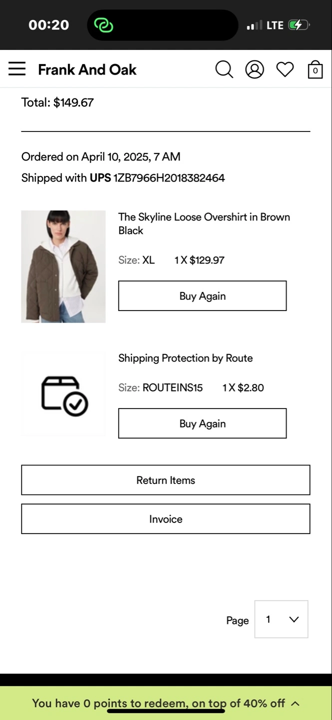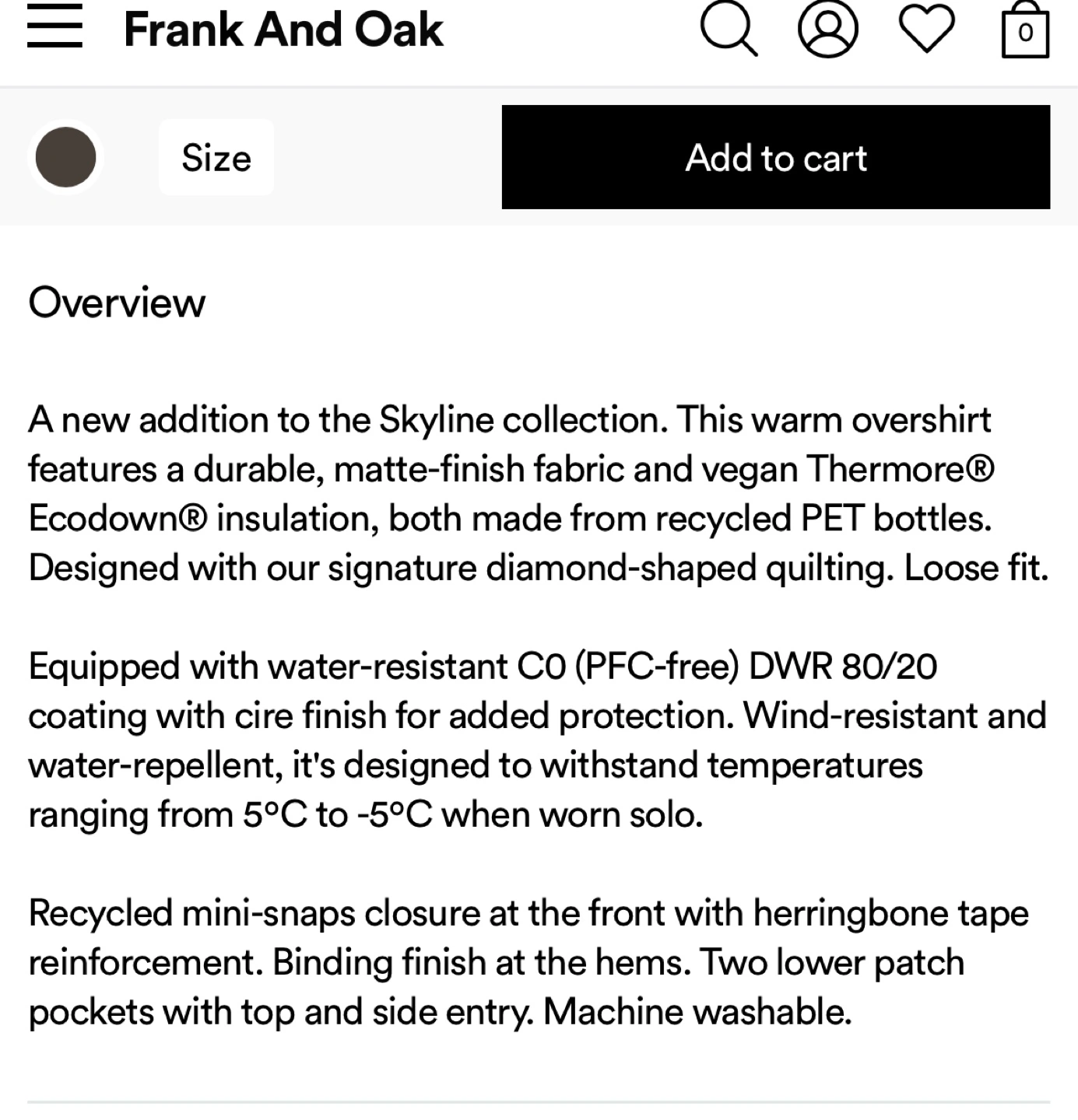 Frank And Oak Brown Quilted Overshirt - Size XL