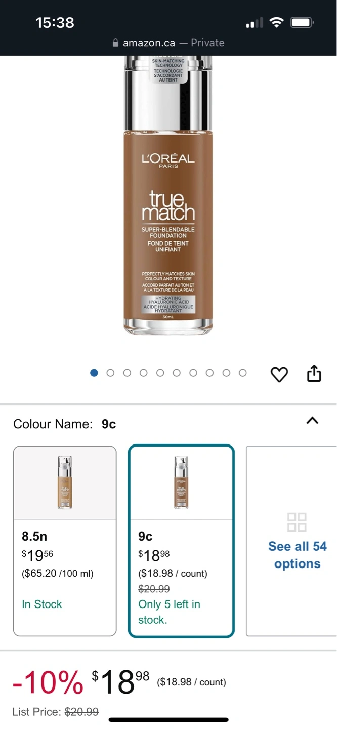 Pre-owned L'Oréal Paris True Match foundation. Shade 9C, Deep Cool. Hydrating hyaluronic acid. Super-blendable formula.