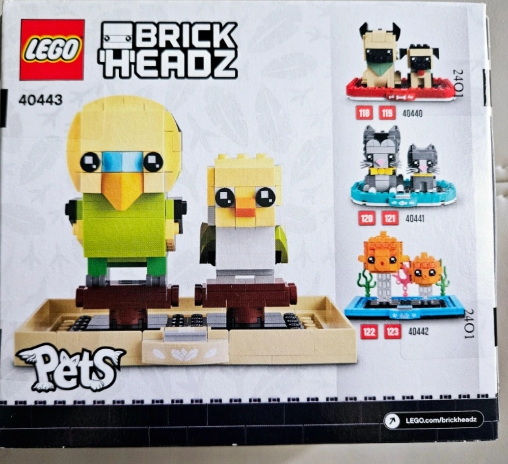 Brand New retired LEGO BrickHeadz set. Features a budgie and chick. 261 pieces. Ages 8+. Collect all the pets!