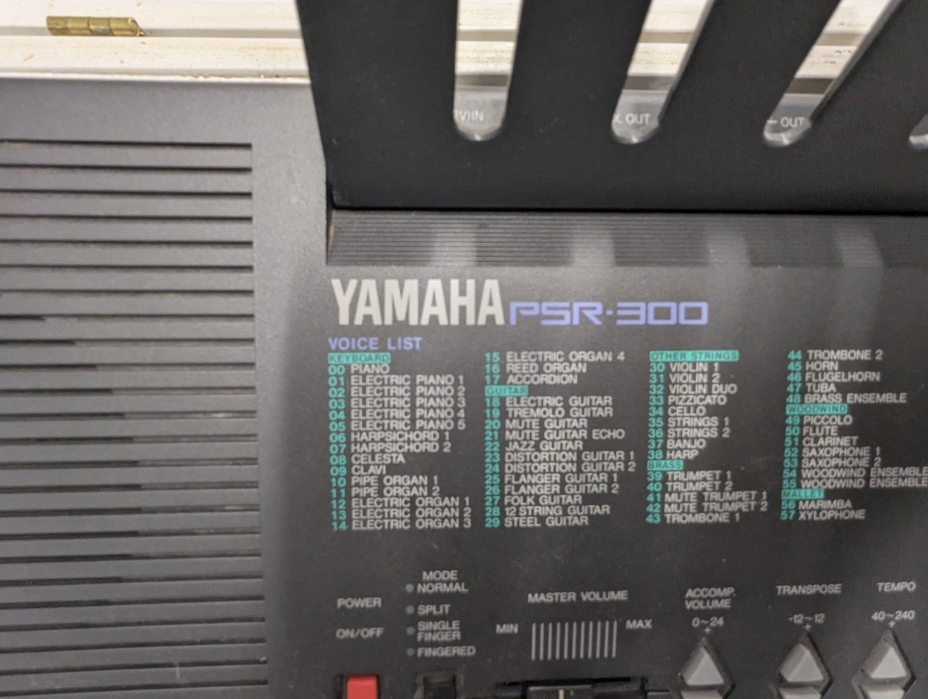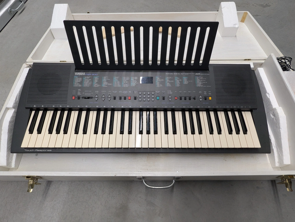 Yamaha PSR-300 keyboard. Features many instrument voices. Includes carrying case (handmade by my grandad). Touch response keys. Comes with a basic, folding stand. Everything works, it's just all a little dated! Would love to get this to someone who will use it.