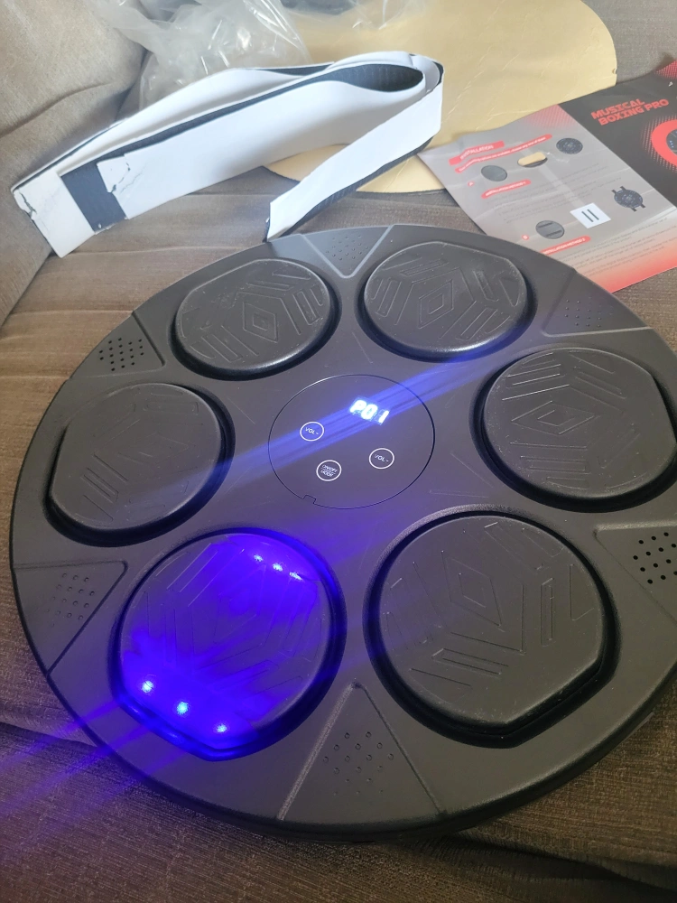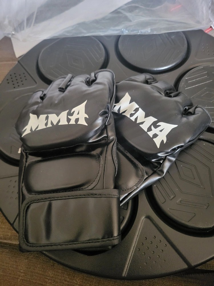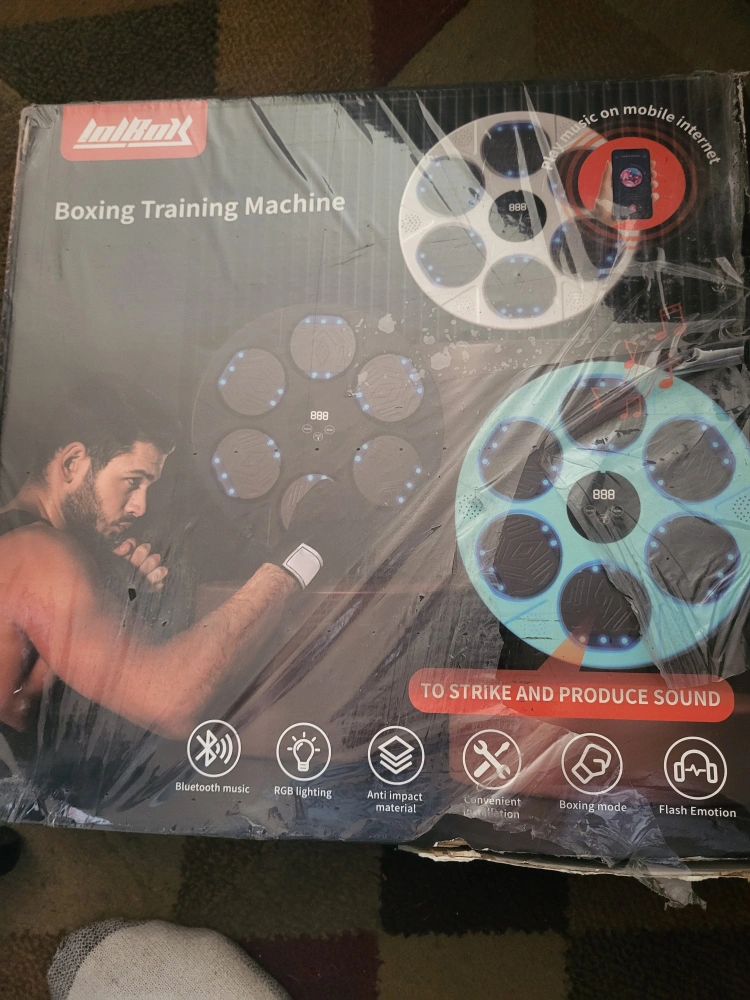 boxing training machine, slightly damaged on back but works great. includes mma gloves and wall mounting accessories.