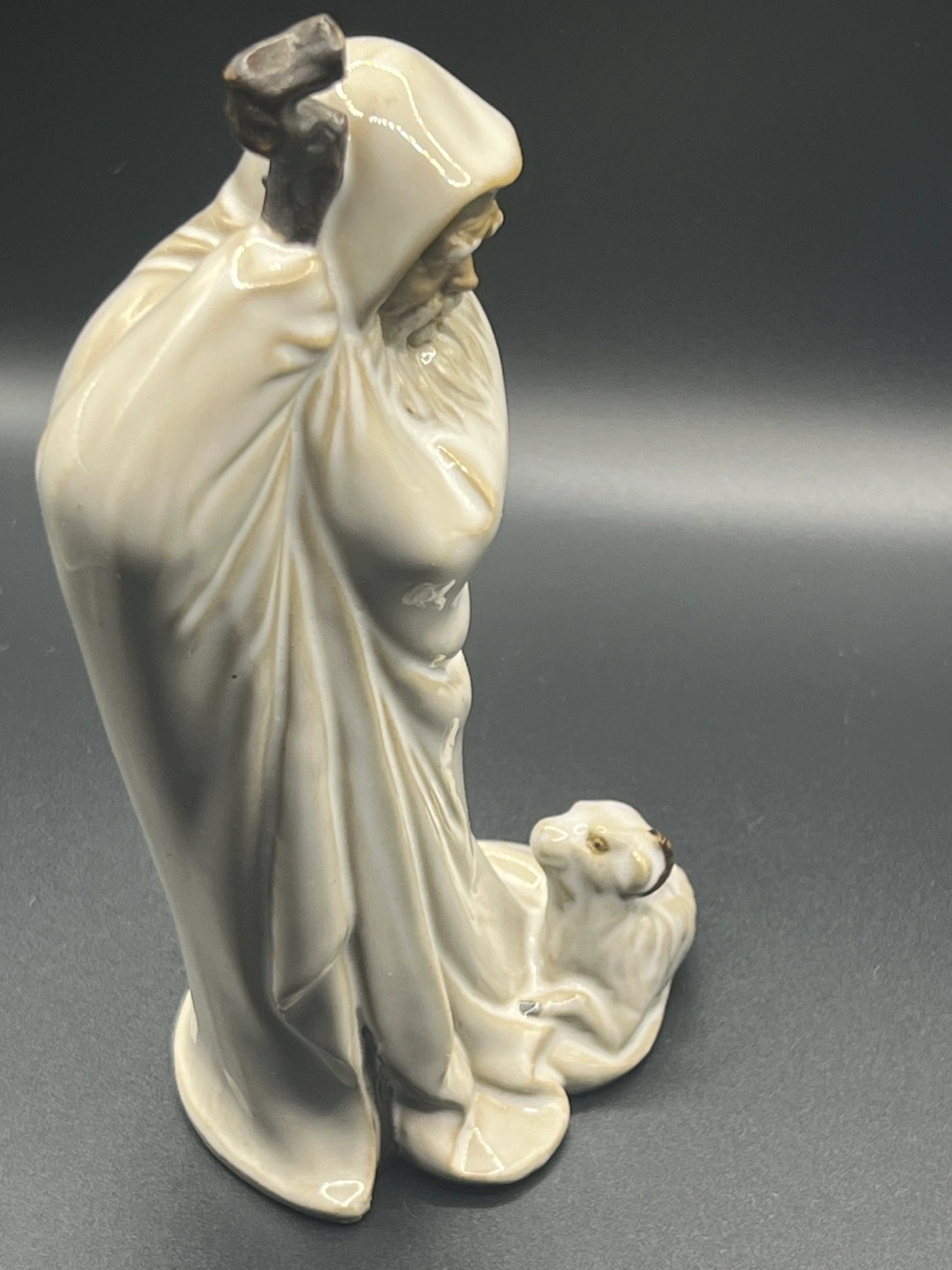 Vintage Ceramic Figurine of Su Wu with a Lamb