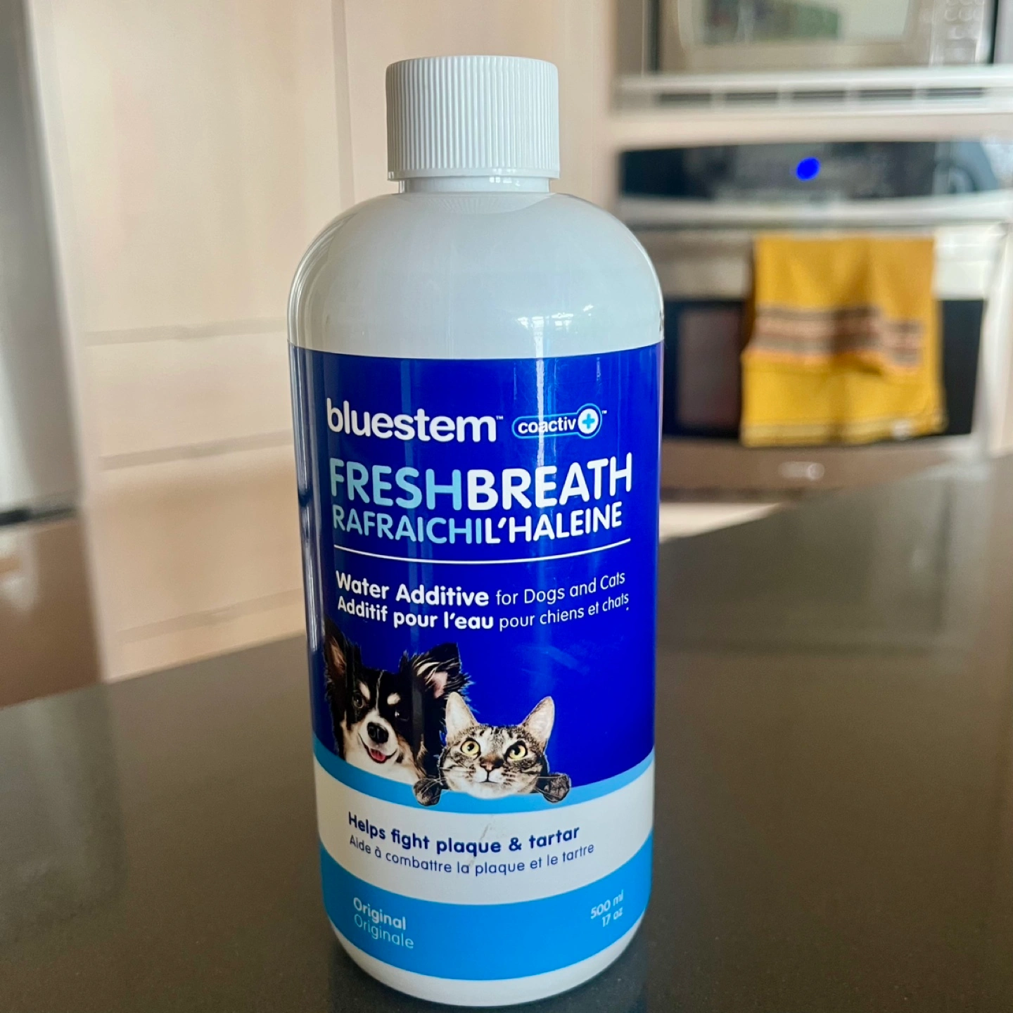 NEW 500 ml bottle of Bluestem Freshbreath water additive. Helps fight plaque and tartar. For dogs and cats. Original formula. Sealed bottle. Expires 05/27. Sells for $20+. Pick up Montgomery. Cross-posted.