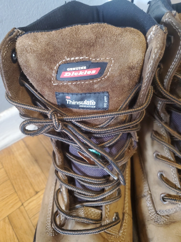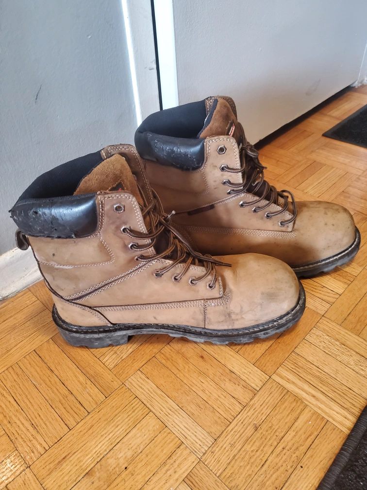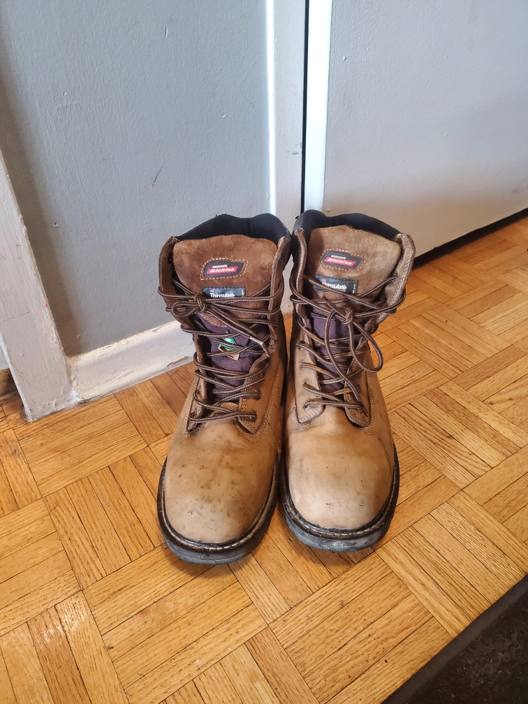 52Used men's Dickies work boots. Tan leather, lace-up. Waterproof and insulated with 3M Thinsulate. Flex-Welt construction. good condition only cash price firm no delivery. I have and Safety Shoes for Men's size 11 / 12 and 13 for sale different prices different colors and different Brands if you want you can come to see all Safety shoes only cash. I have and app Facebook and app Kijjijji. Location Cawthra and Lakeshore Mississauga.