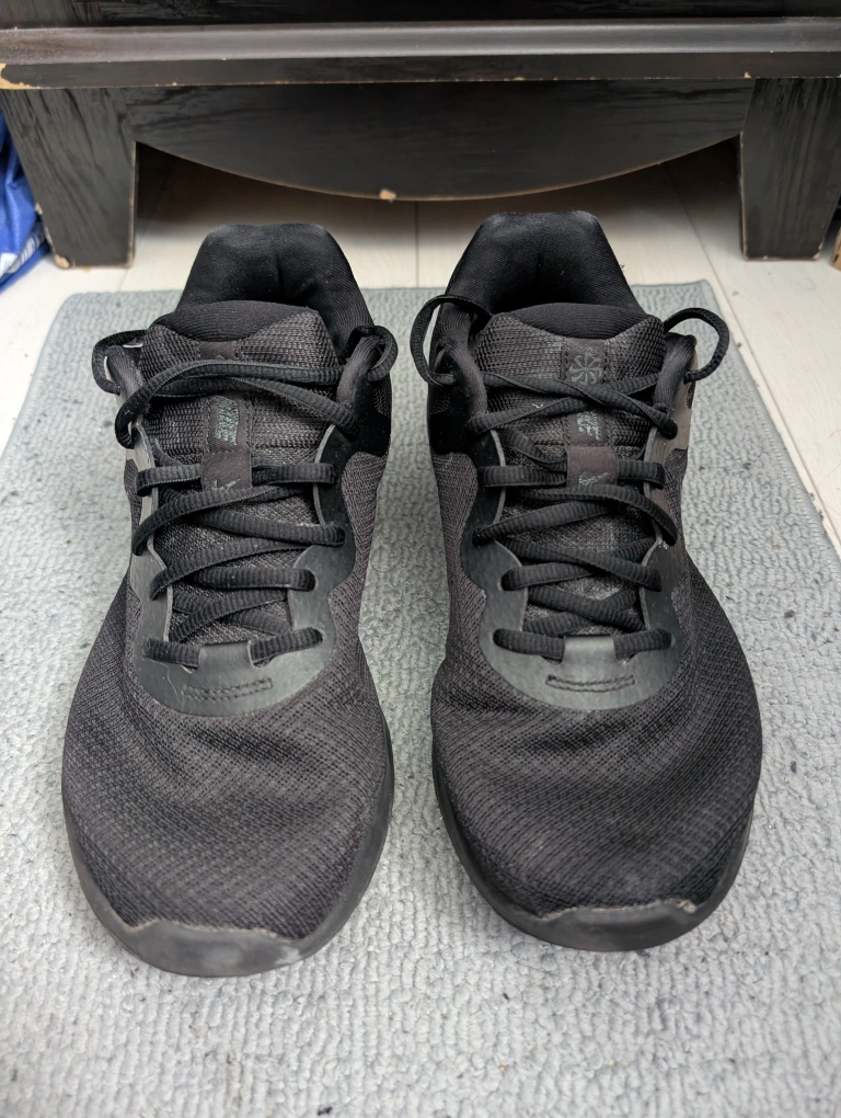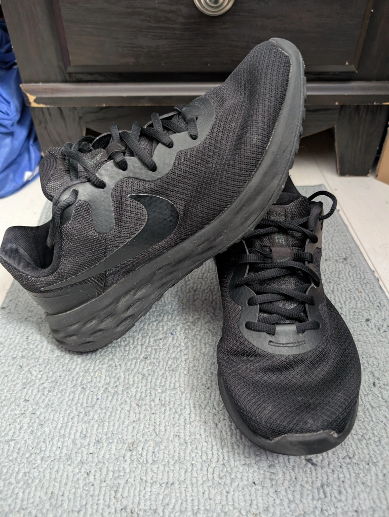 Pair of black Nike running shoes. Good condition. Lace-up closure. Comfortable for everyday wear or workouts. Meet up at Finch West, Lansdowne subway stations or Dufferin mall.