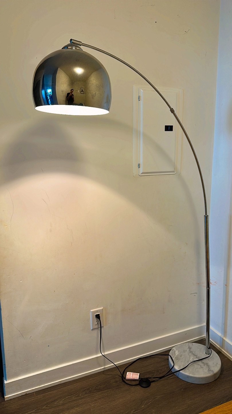Arc Floor Lamp, Chrome Finish, Marble Base