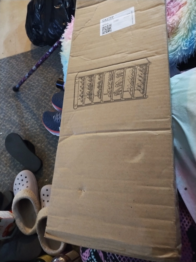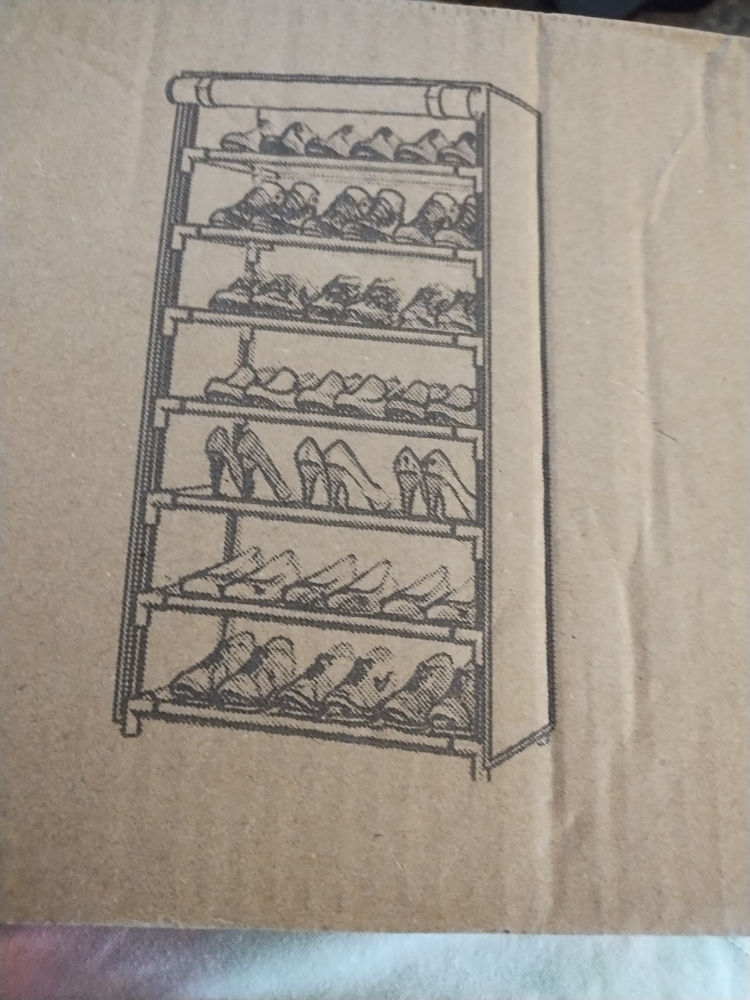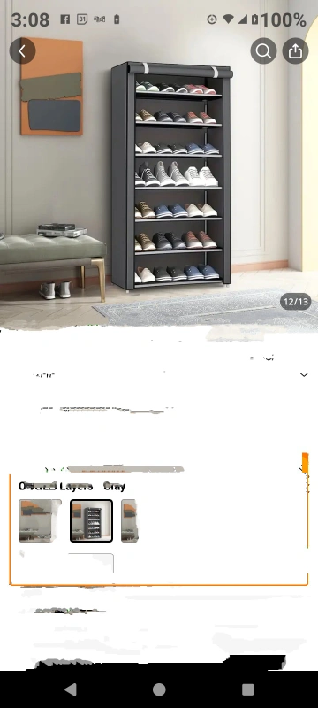 Grey fabric shoe rack. Eight shelves for ample storage. Easy assembly. Great for entryways or closets.