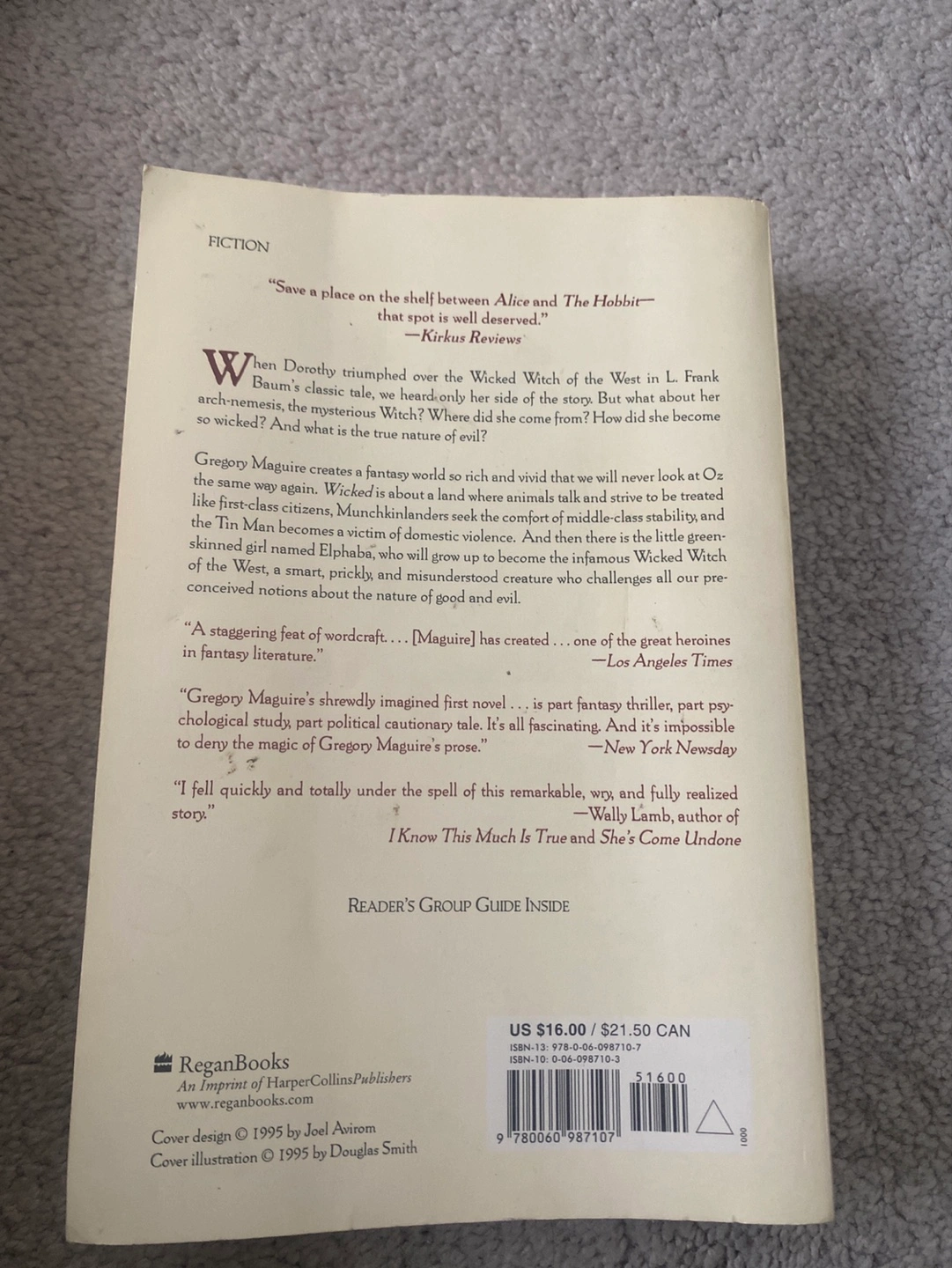 Gregory Maguire novel. Paperback. More than 1 million copies in print. Good condition.