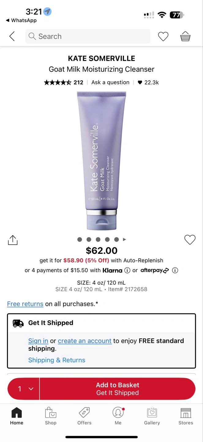 KATE SOMERVILLE GOAT MILK MOISTURIZING CLEANSER: