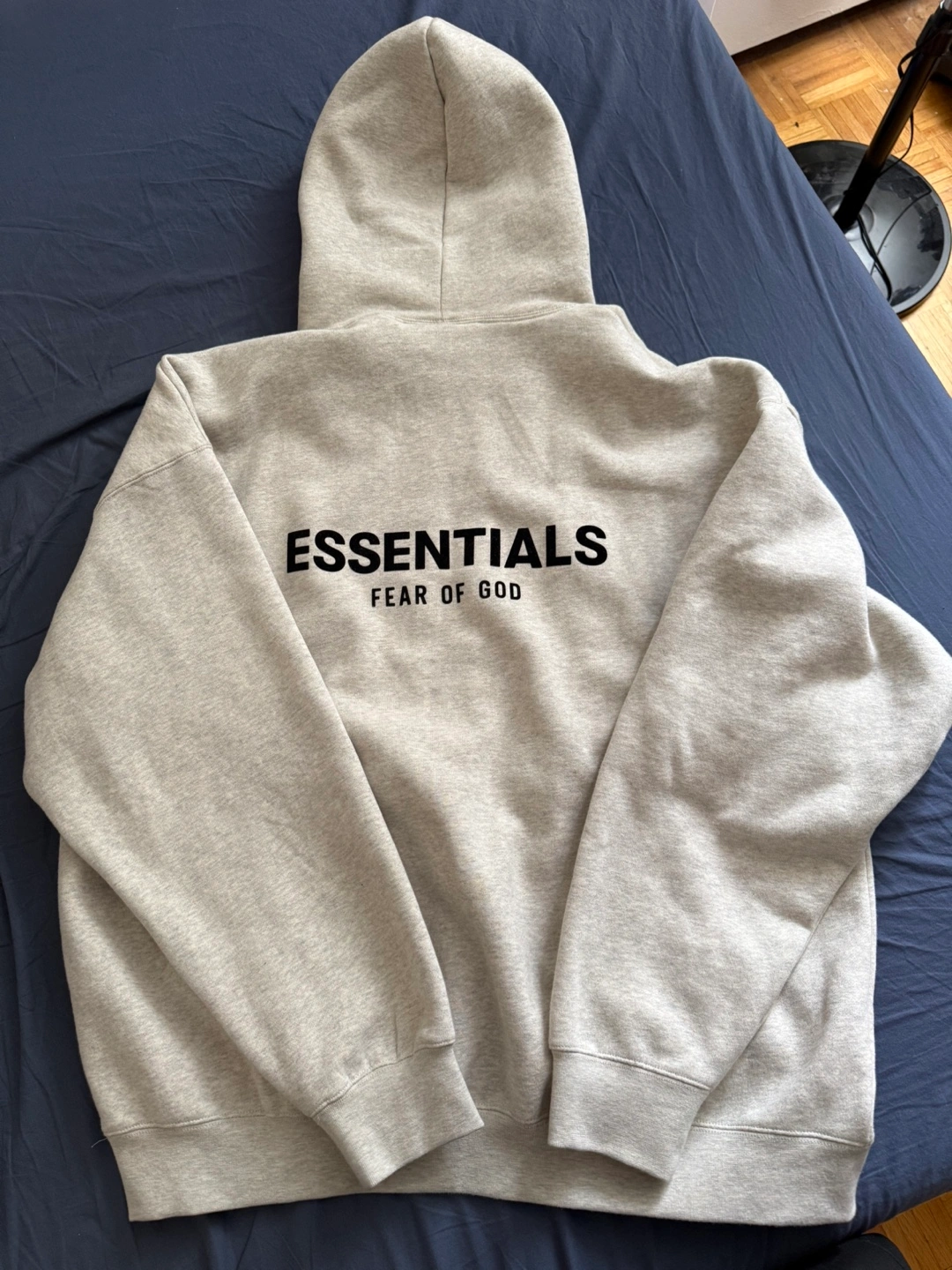 Fear of God Essentials oversized hoodie. Size XXL. Light grey colour. Features a large Essentials Fear of God logo on the back. Excellent condition.