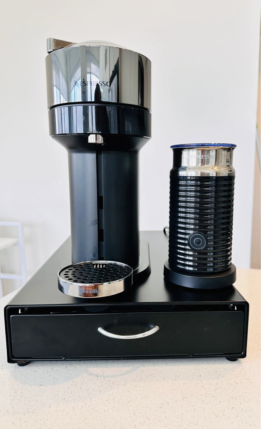 Kit 3 pieces- Black Nespresso by Breville Creatista Uno espresso machine. Includes milk frother and a used capsule drawer. Excellent condition.