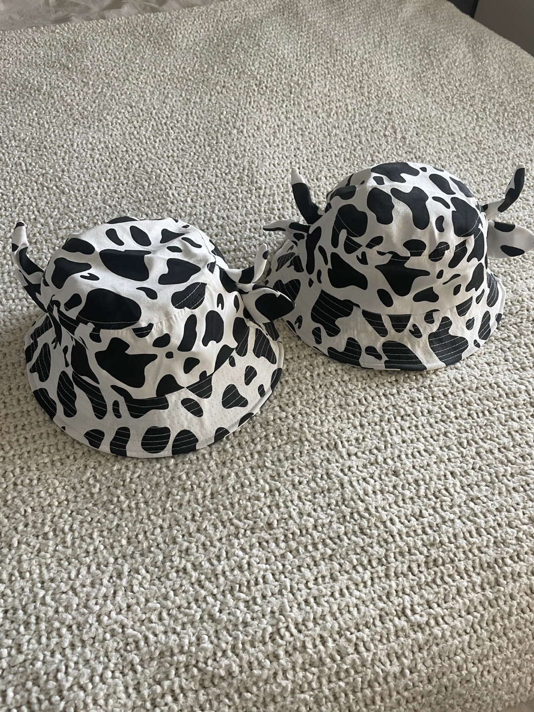 Adorable bucket hats. Features a cow print design and cute little horns( There is a wire inside, so you can adjust the horns)