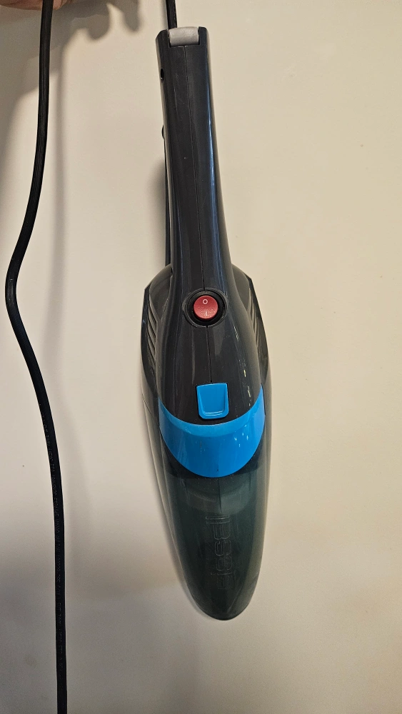 Lightweight handheld vacuum. Great for quick cleanups. Cord included. Compact design, easy storage.