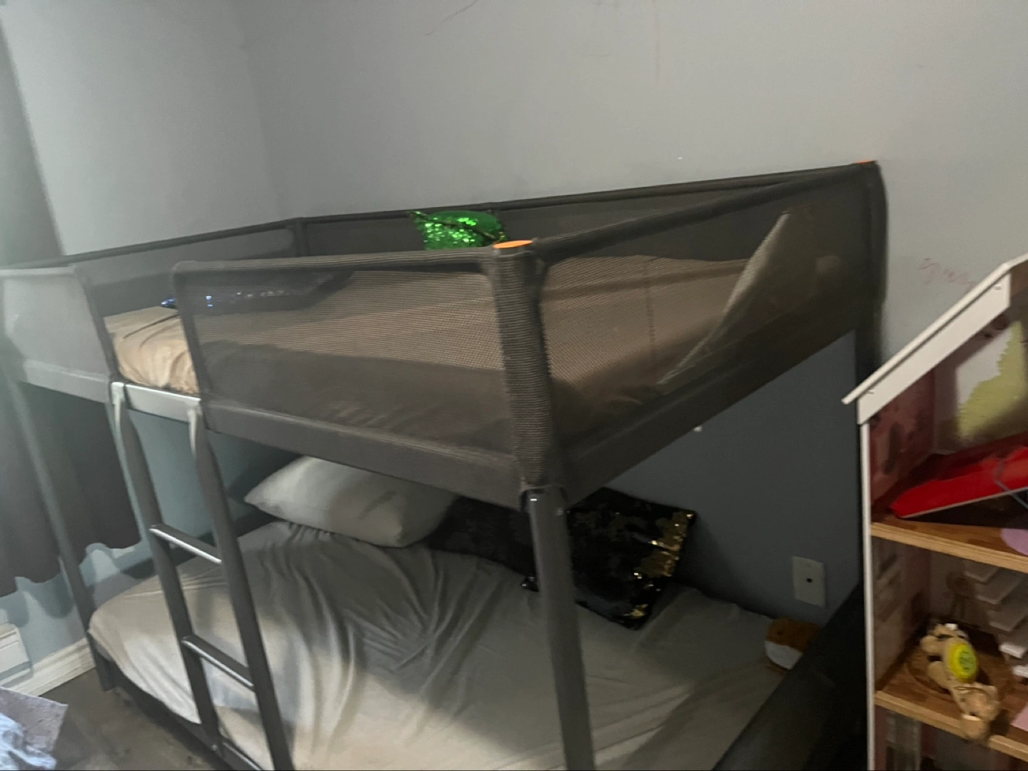 ๐Grey metal bunk bed. Mesh sides for safety. Includes ladder. Good condition. Suitable for children. Mattresses are not included.๐