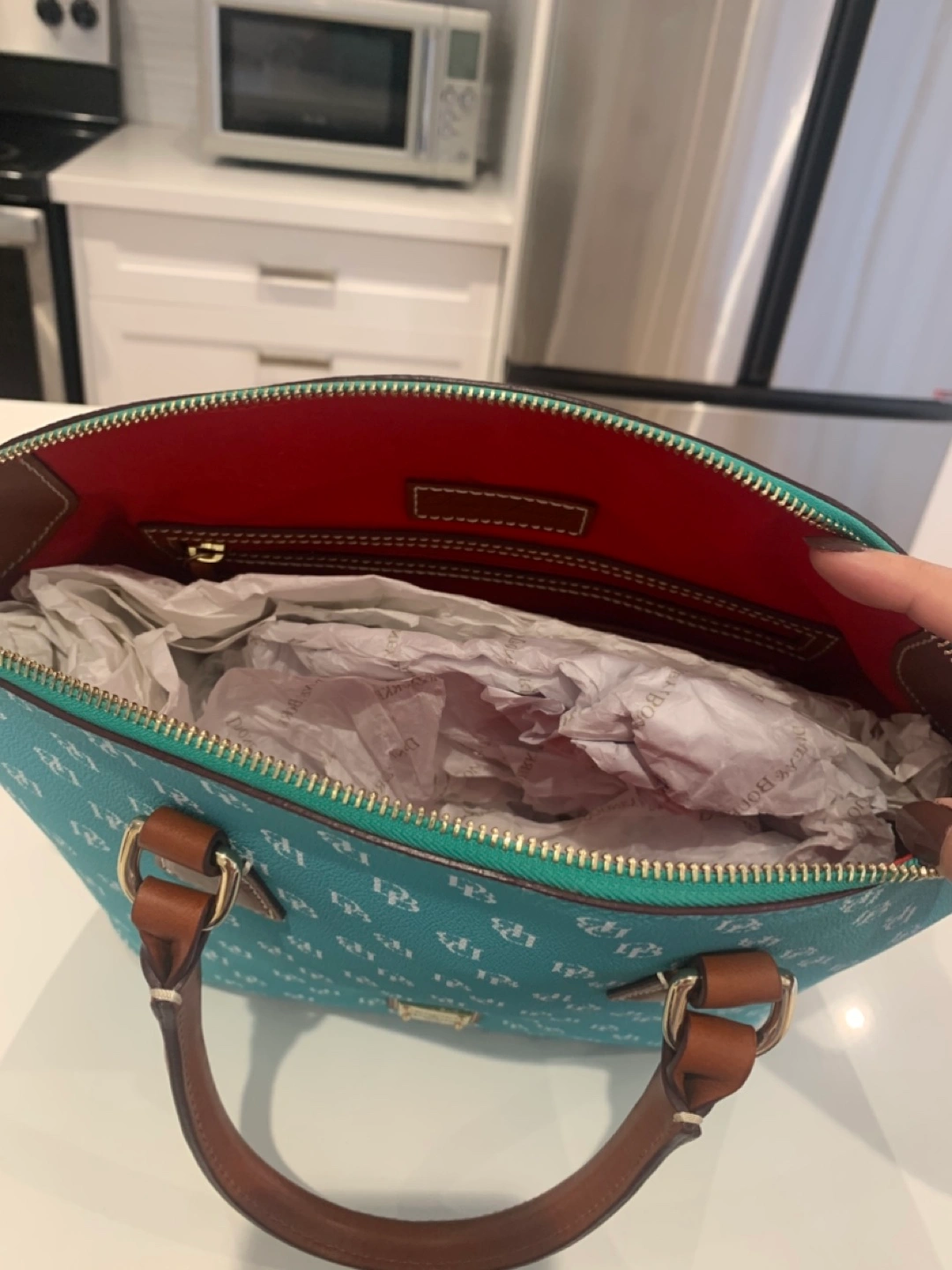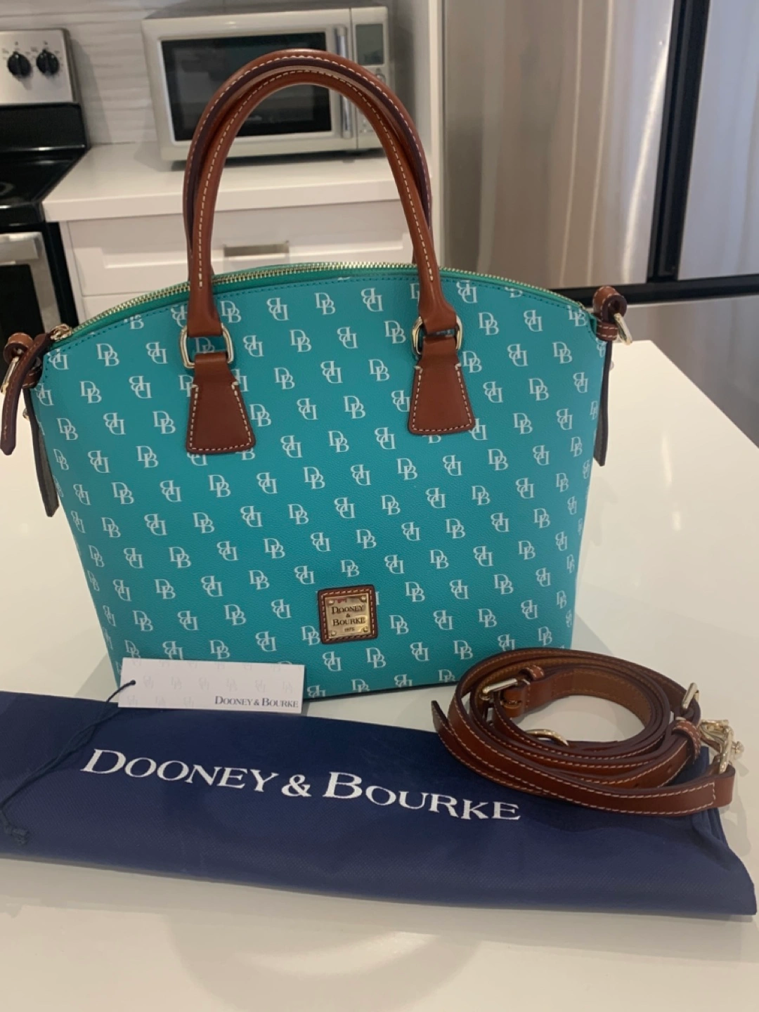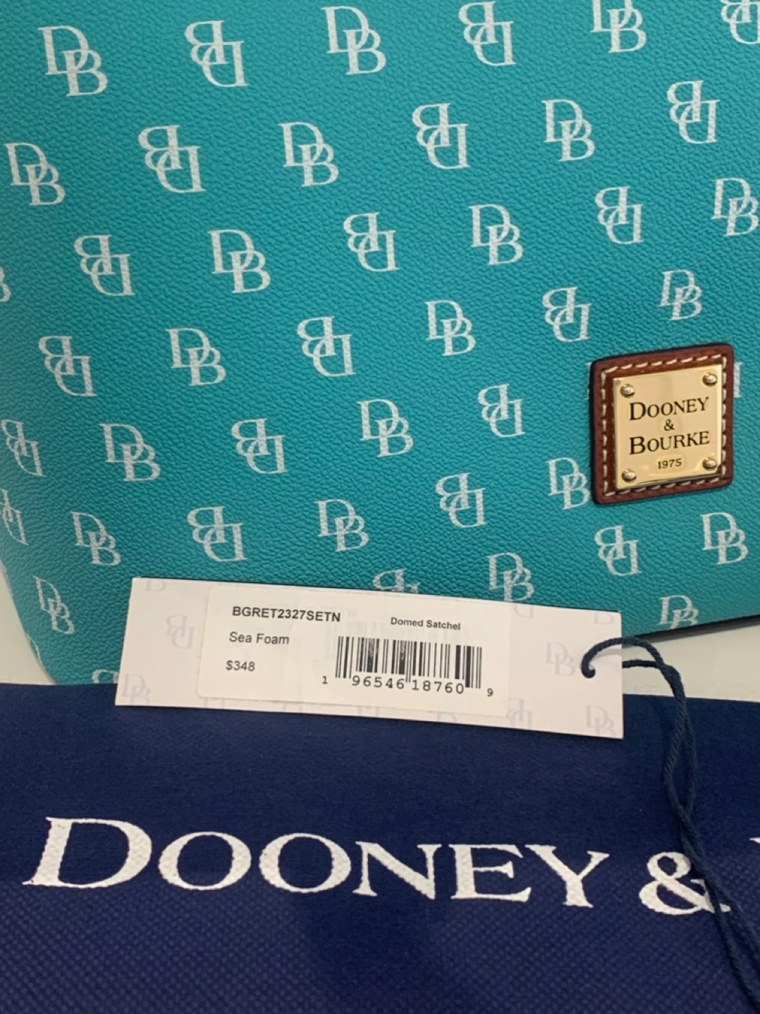 🩵 Brand new with tags Dooney & Bourke handbag. Sea Foam colour. Domed satchel style. Includes strap and dust bag. 🩵Trimmed in gorgeous leather, limited edition and hard to find colour. 🩵 Comes from a smoke and pet free home. Serious buyers only please.