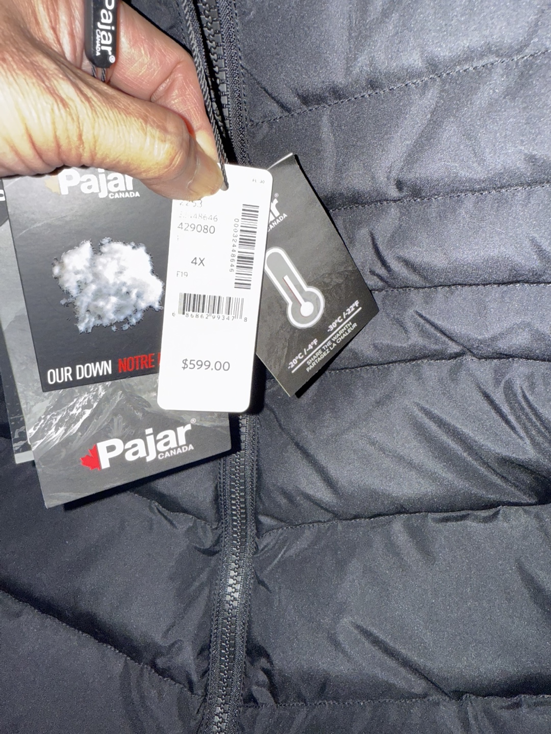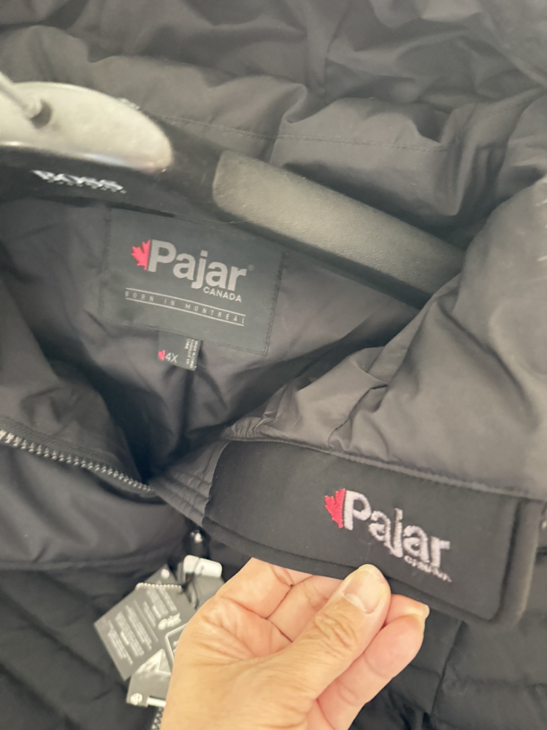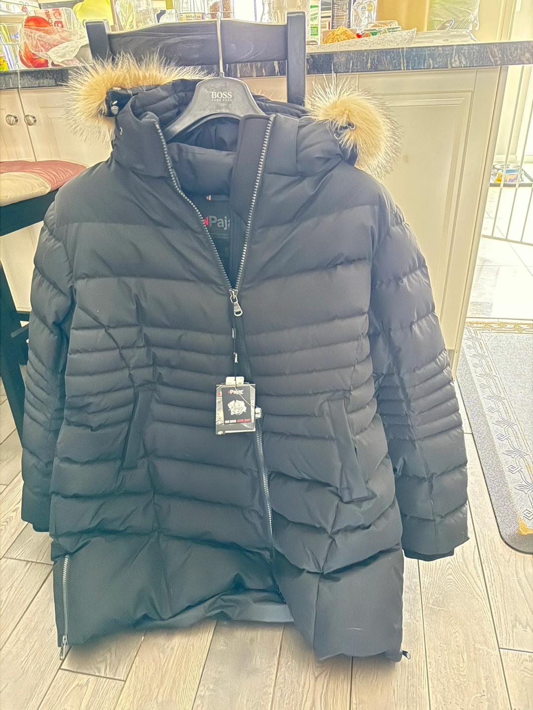 Brand new (unused) Pajar winter coat (all down). Black, size 4W, Removable hood, zipper on both sides, makes you warm on winter at -20 to -30 degrees Celsius.