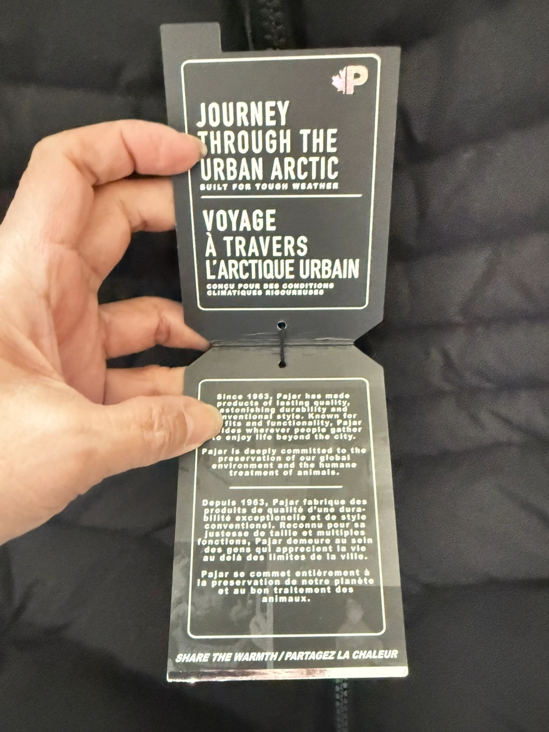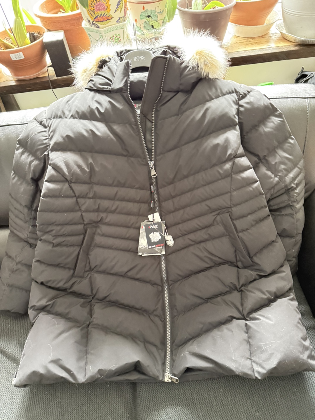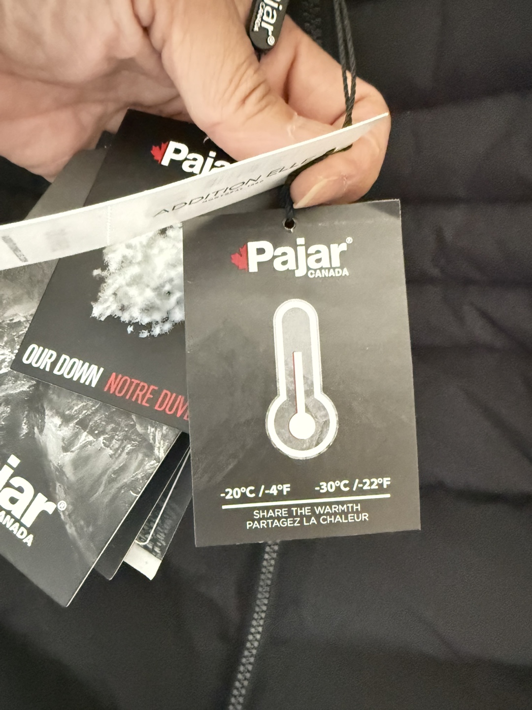 Brand new (unused) Pajar winter coat (all down). Black, size 4W, Removable hood, zipper on both sides, makes you warm on winter at -20 to -30 degrees Celsius.