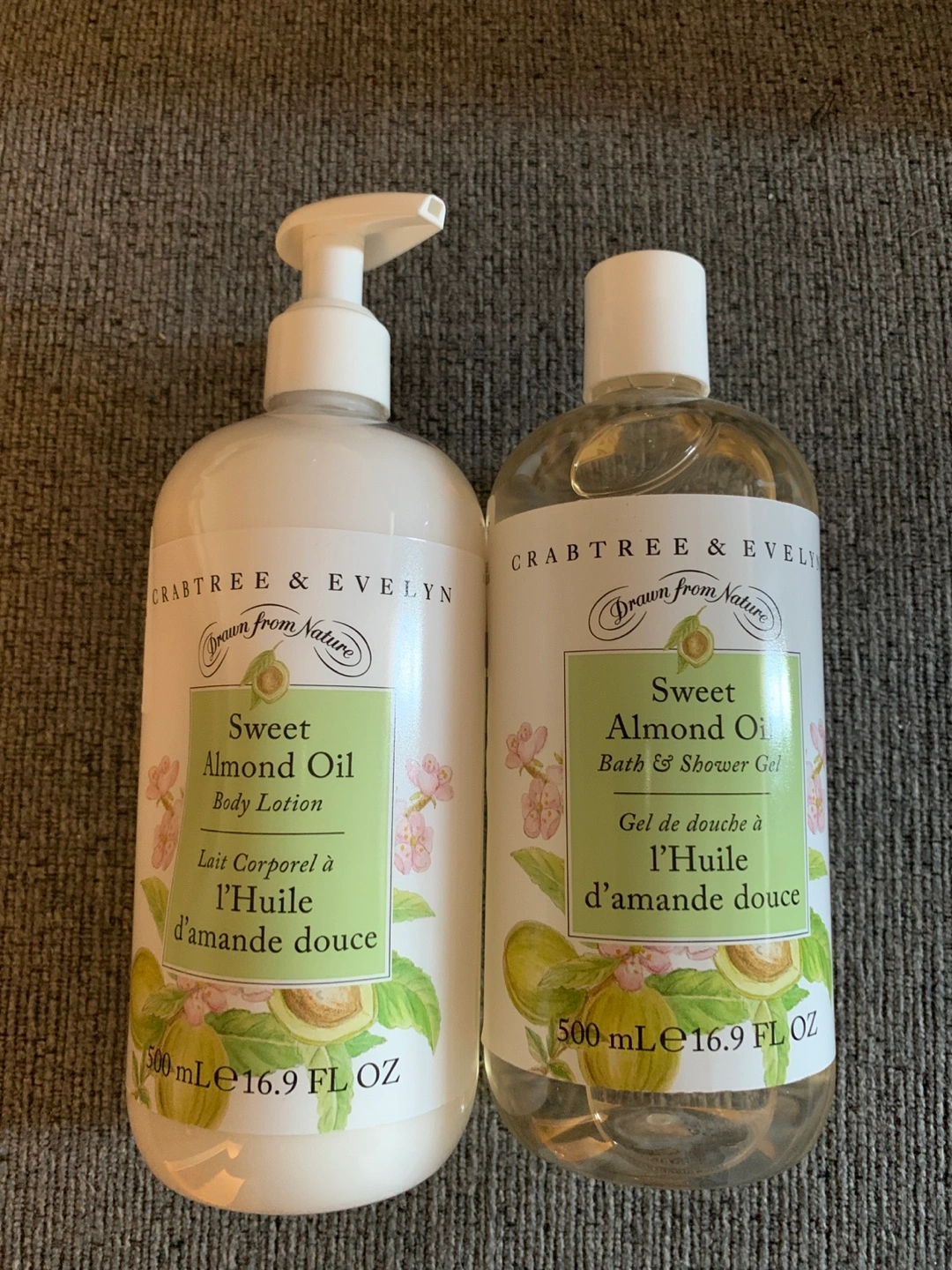 434500ml body lotion and shower gel. Sweet almond scent. New, unopened.
