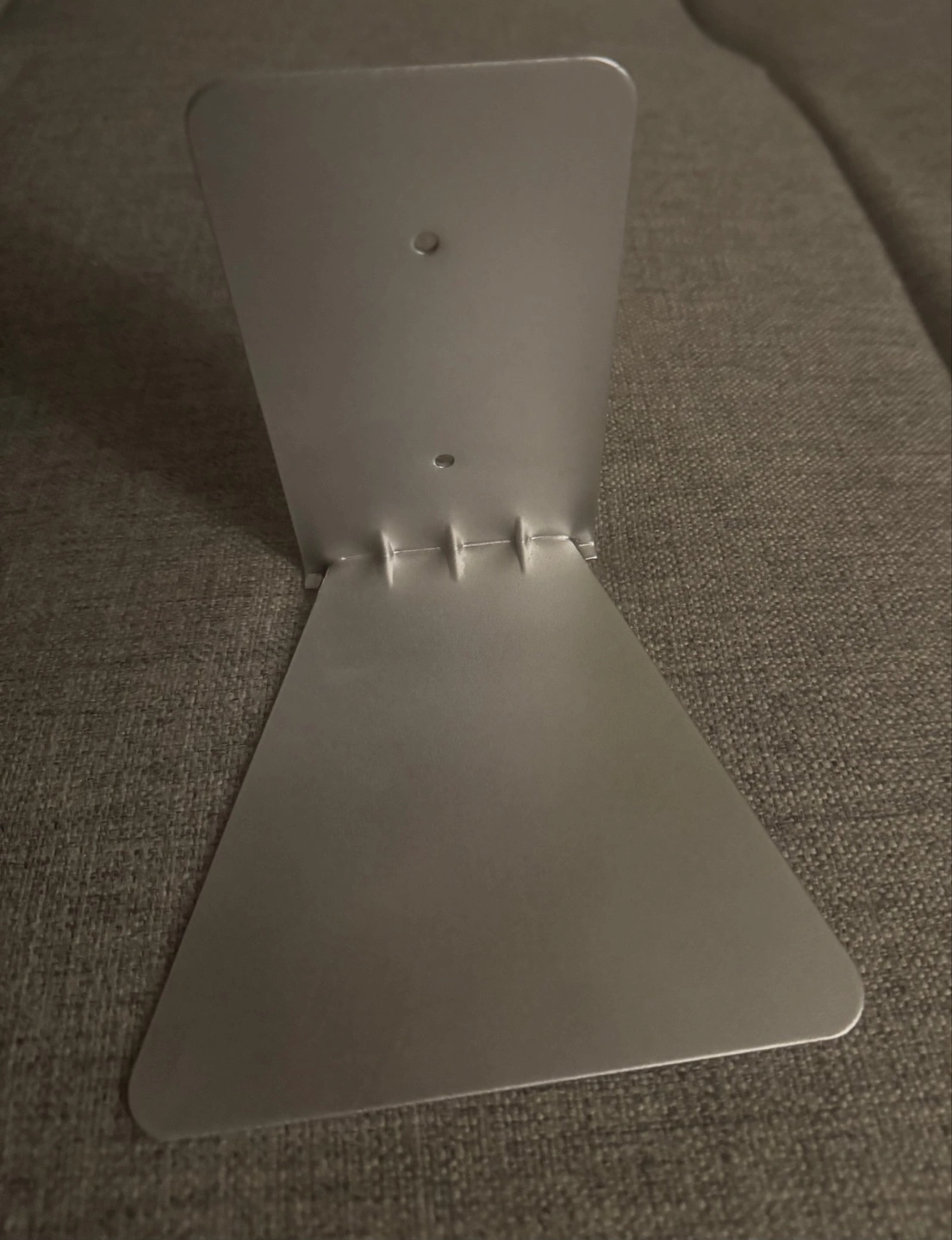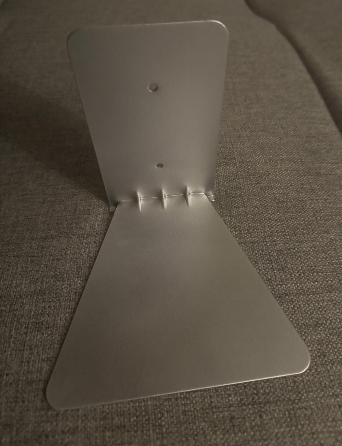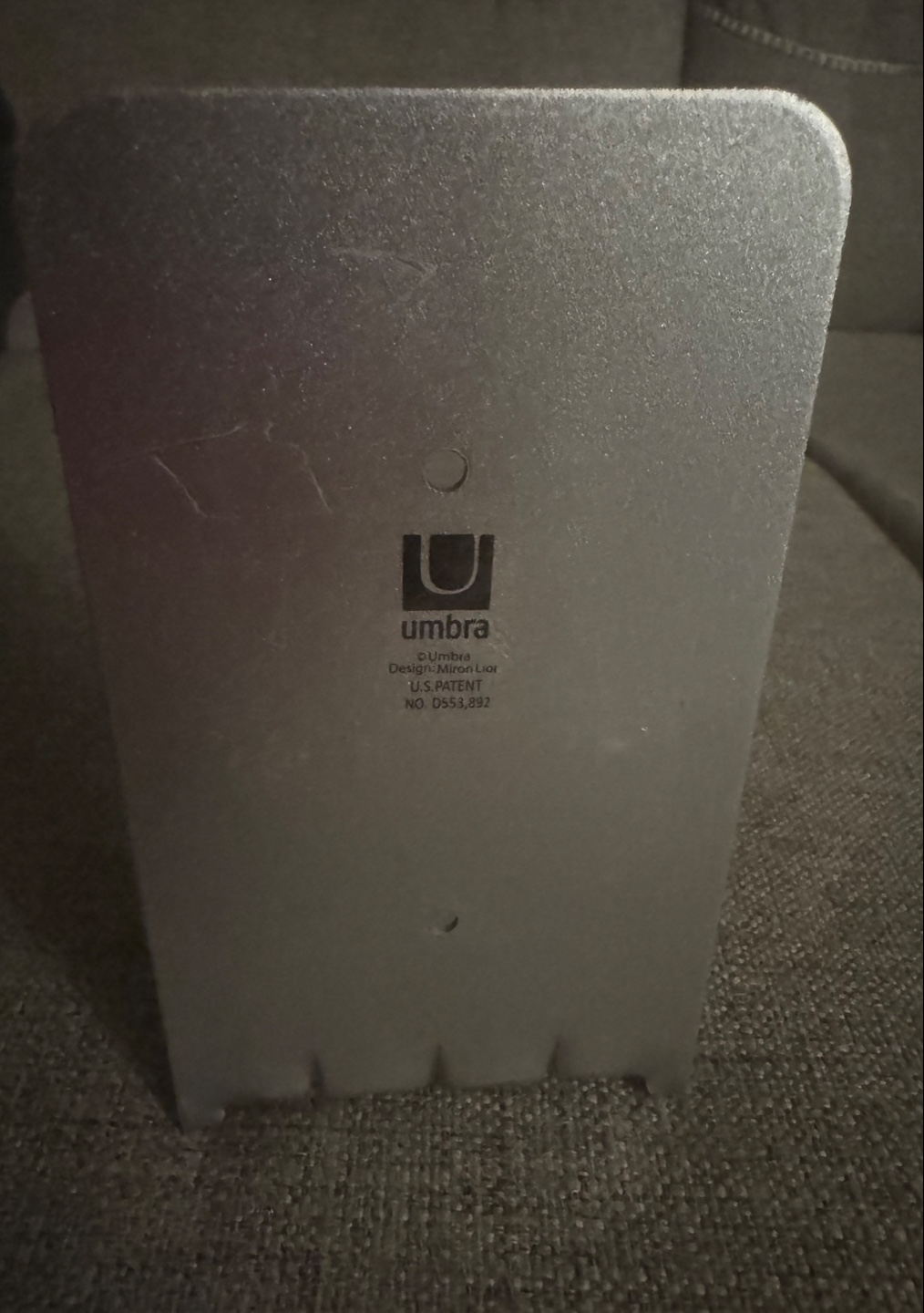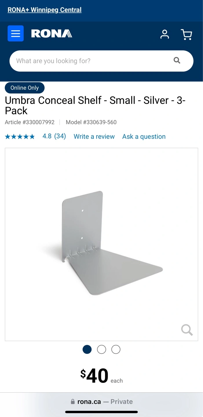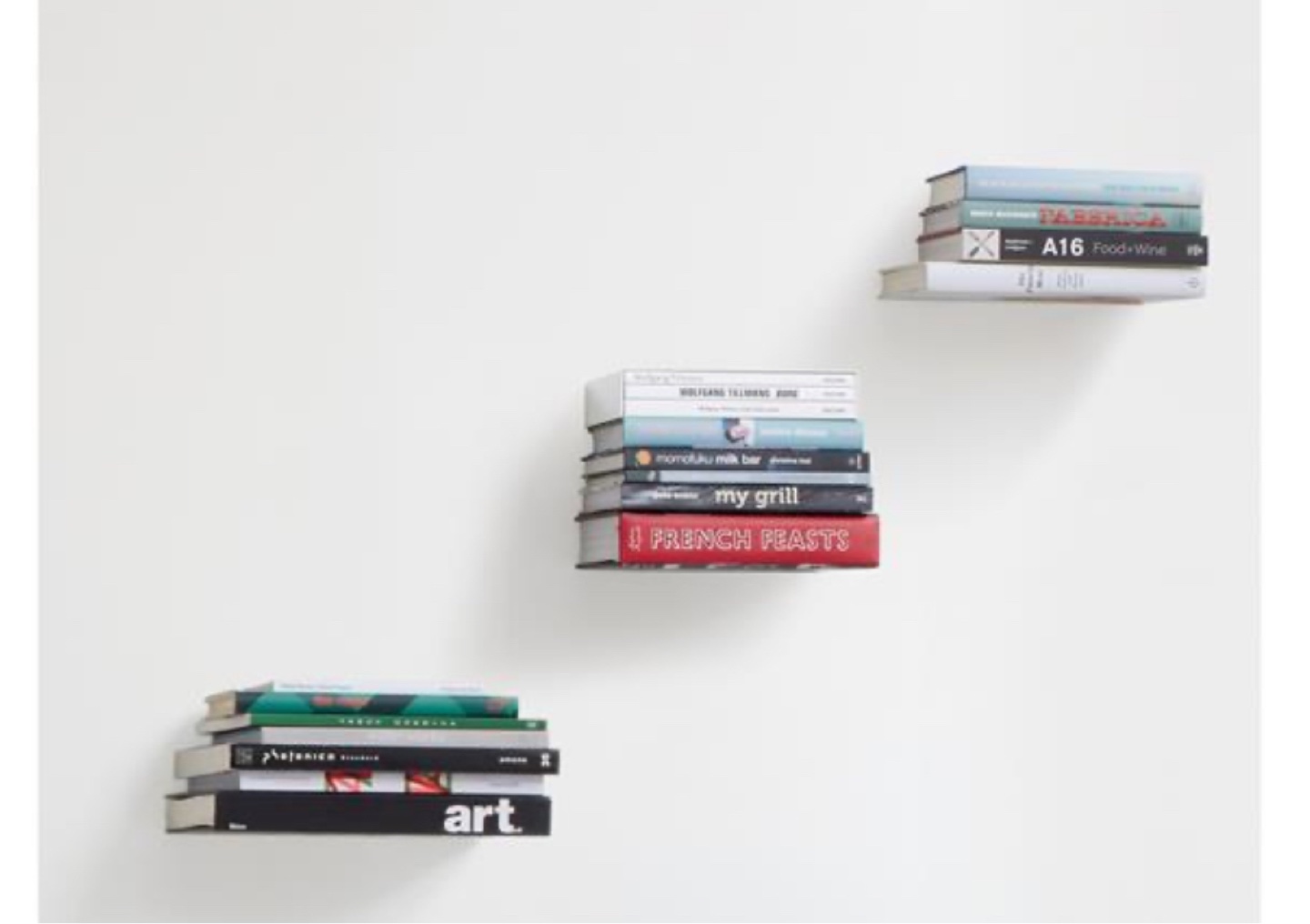 Single Umbra Conceal floating shelf. Small size. Silver metal. Modern and minimalist design. Perfect for books or displaying small items.