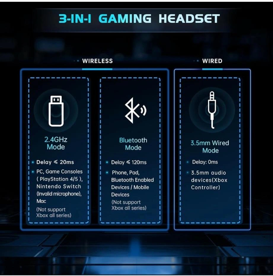 New Gtheos 2.4GHz Wireless Gaming Headset for PS5, PS4 Fortnite & Call of Duty/FPS Gamers, PC, Nintendo Switch, 7.1 Surround Sound, Bluetooth 5.3 Gaming Headphones with ENC Mic, 40+Hr Battery
