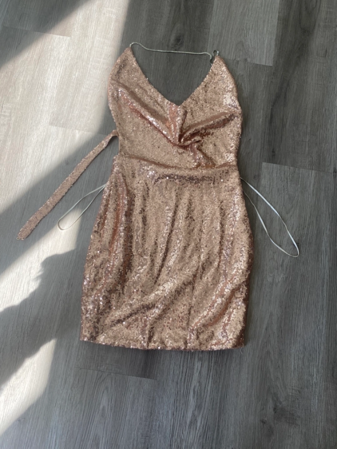 Rose gold sequin mini dress. Size 6. Open back. Adjustable straps. Stunning for a night out.tags still on , pick up in Newmarket
