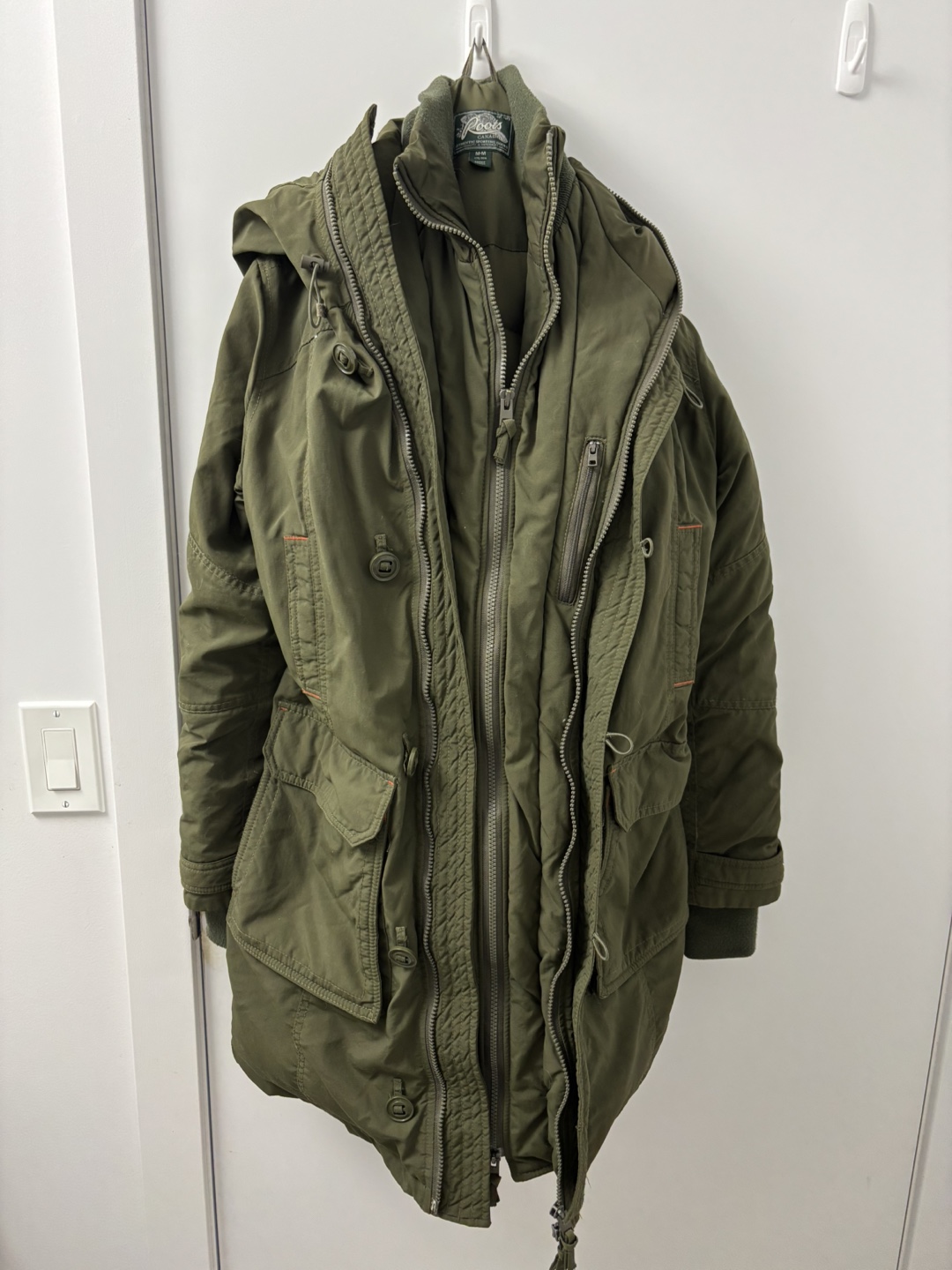 Buy & SellRoots Canada Olive Green Parka Jacket - Size M/MRoots Canada Olive Green Parka Jacket - Size M/M$30Women's olive green parka. Long length. Hooded. Zip and button closure. Multiple pockets. Size Medium. Good condition.ConditionGoodSizeMBrandRoots CanadaWHERE TO MEETCheck LocationView MapSELLERverifiedVanessaBayview Village1327 reviews0 chats·0 favorites·24 viewsSEND CHAT TO SELLERHi Vanessa! I’m interested in your listing.Hi Vanessa! I’m interested in your listing.Get the Karrot app to chatSign In to chat