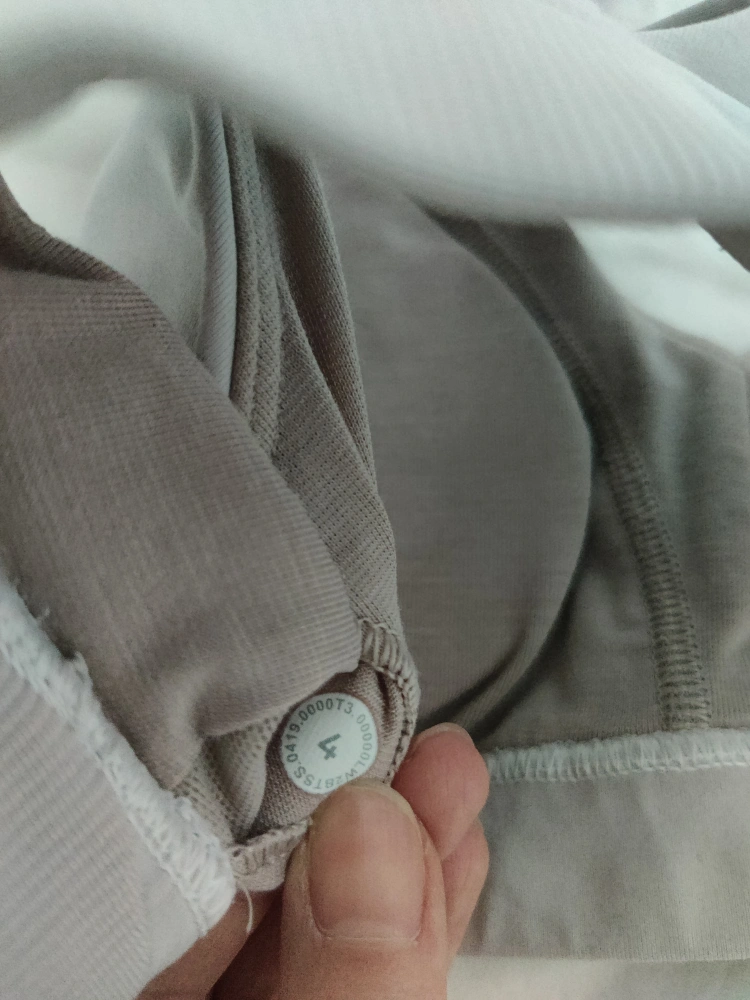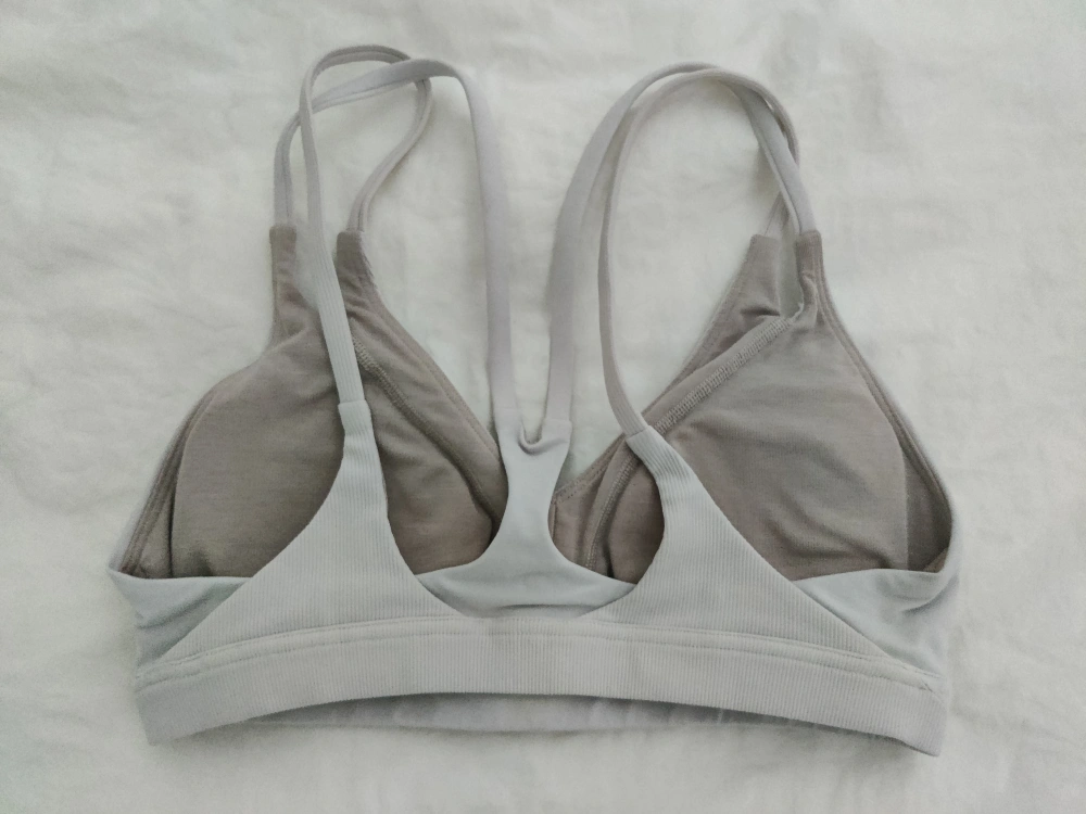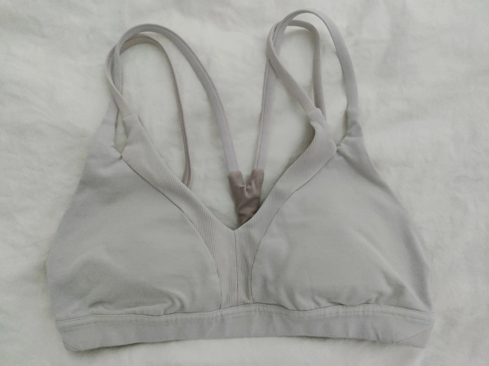 off white/light grey color, Lululemon size 4, come with removable paddings.