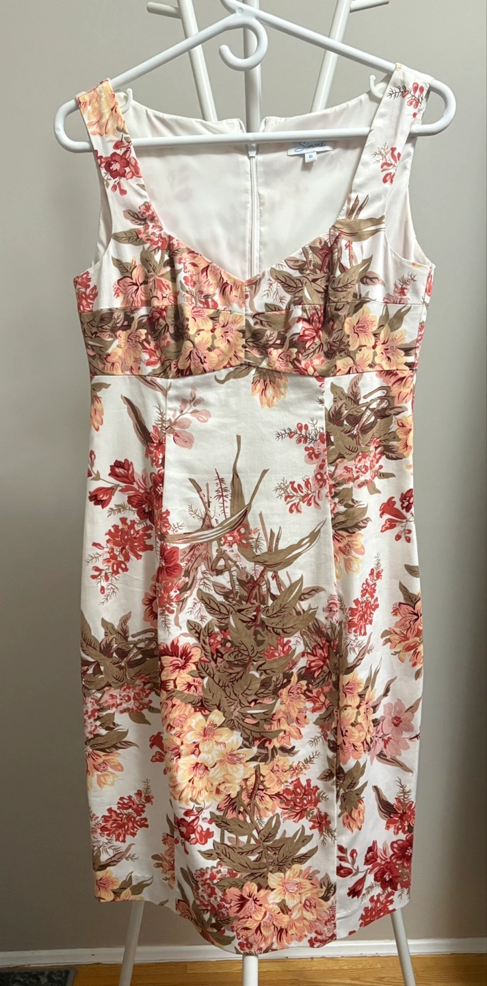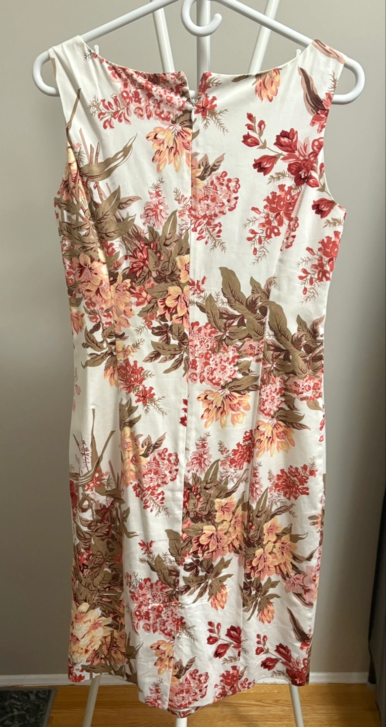 Beautiful floral print midi dress. Sleeveless, fitted bodice, and a-line skirt. Hidden back zipper. Perfect for a summer occasion. Worn few times. Pick up and cash only, please