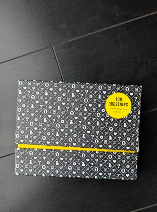 Conversation starter card game. 100 question cards in a box. Great for parties and getting to know people.