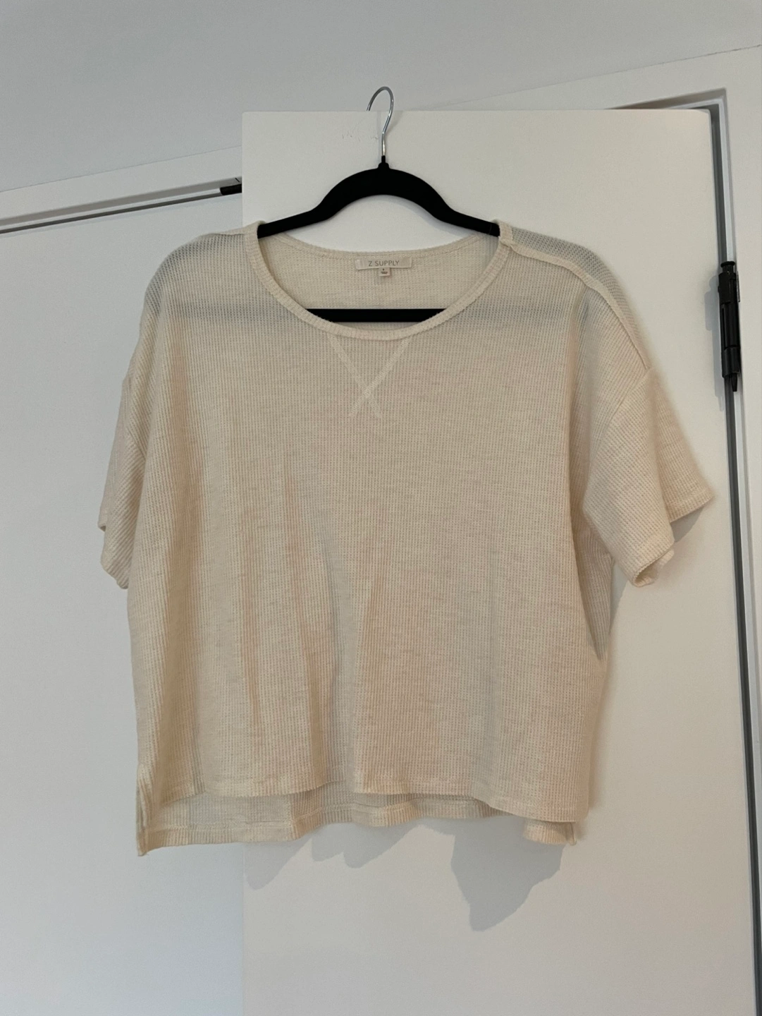 Z Supply Cream Waffle Knit Short Sleeve Crop Top