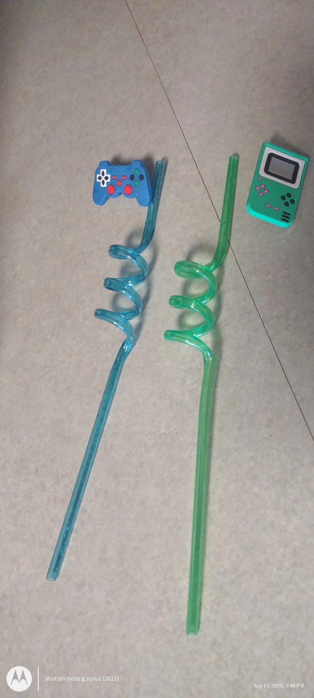 Set of two fun spiral straws. Blue straw features a game controller top. Green straw has a game device top. Great for kids or retro gaming fans never used left over party favors.