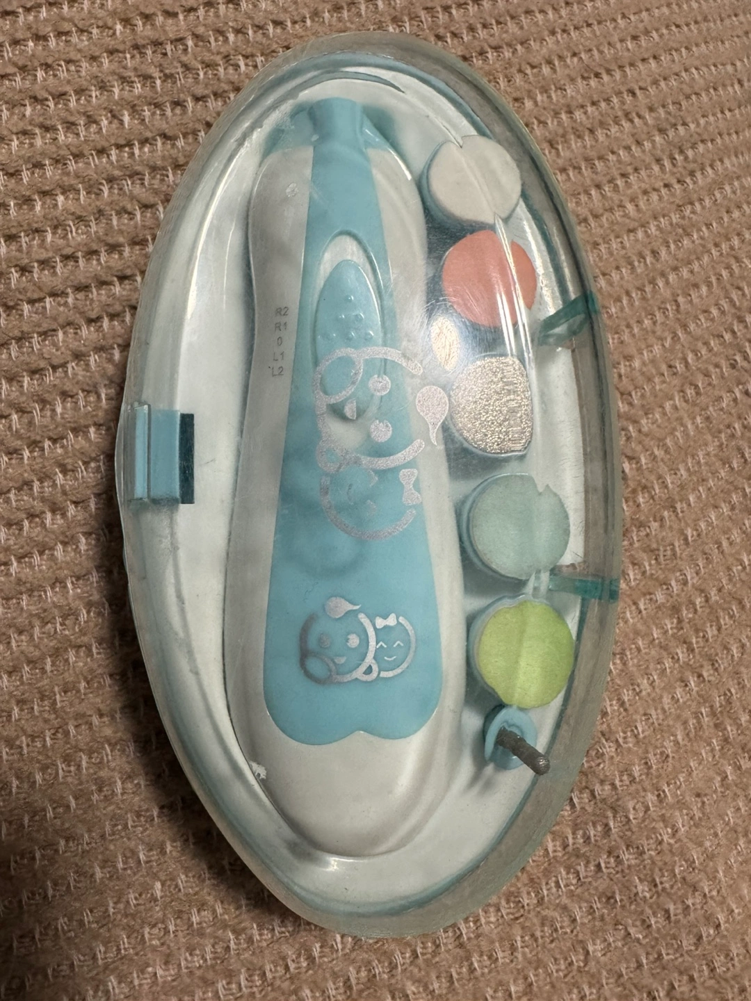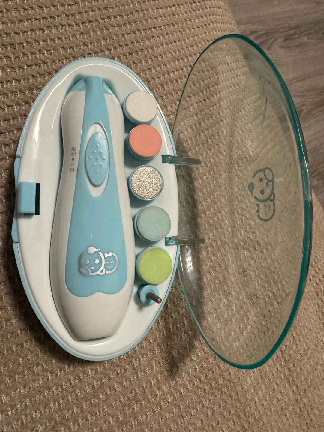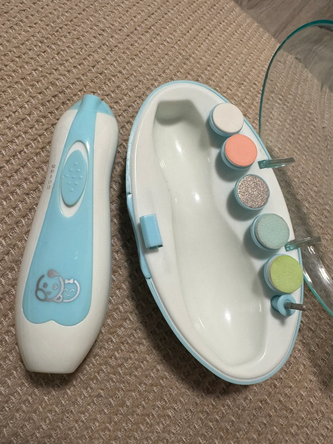 Electric baby nail filer. Includes multiple sanding and polishing attachments. Compact travel case. Great for newborns and toddlers.
