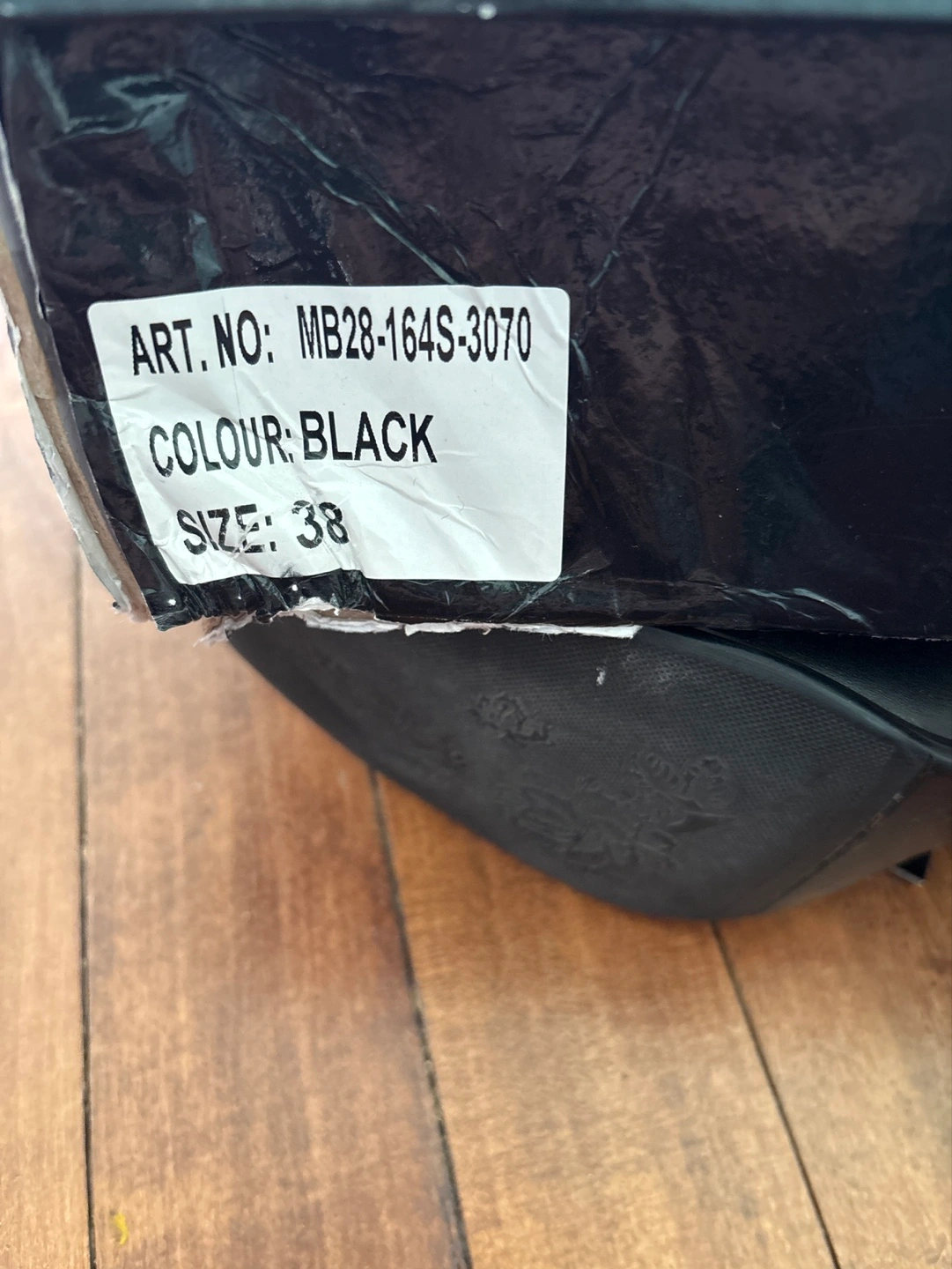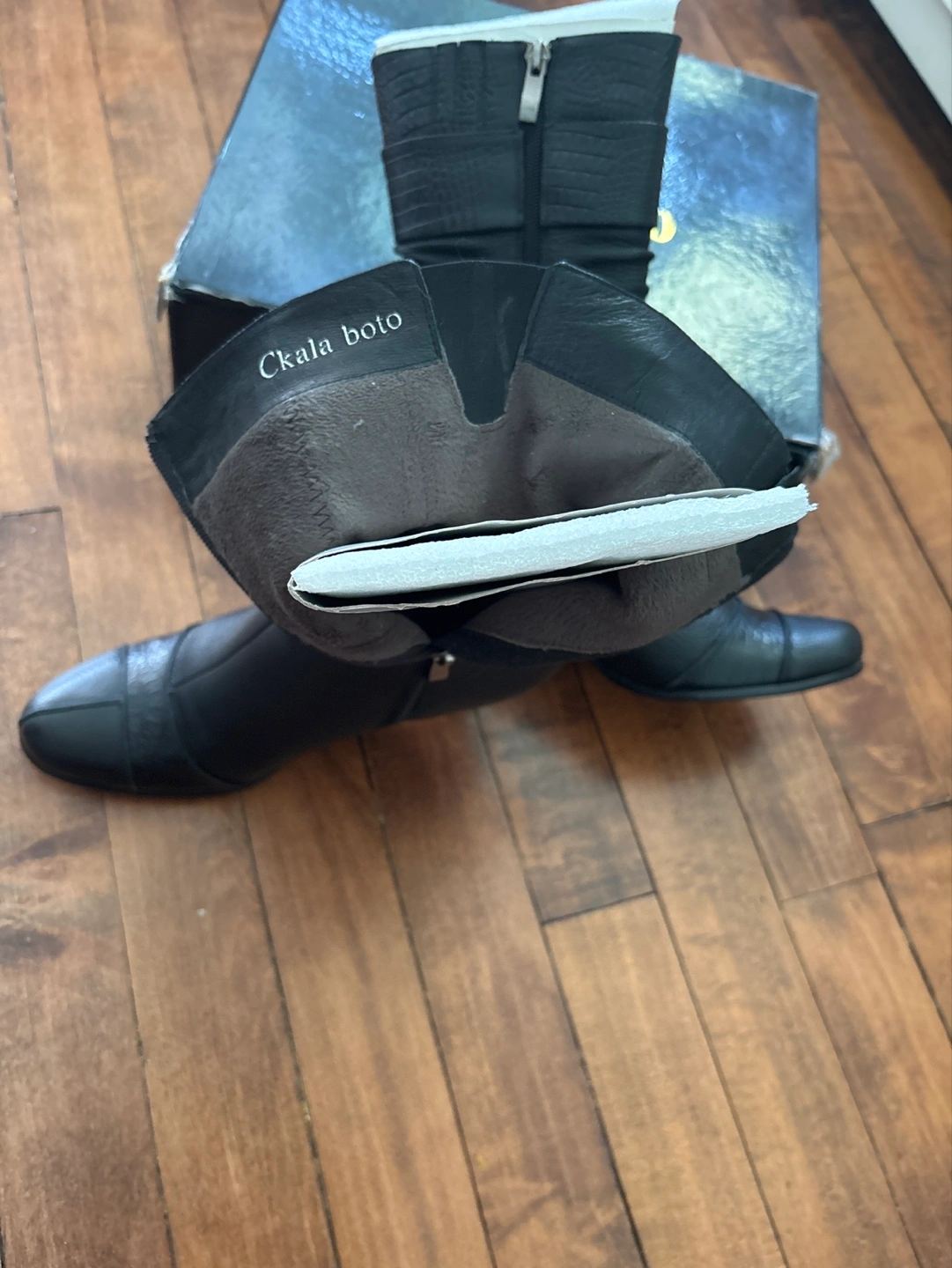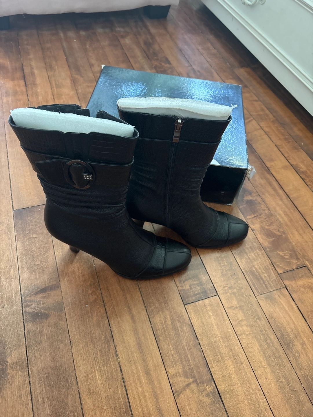 Black leather boots. Side zipper closure. Low heel. Excellent condition. Size 38.