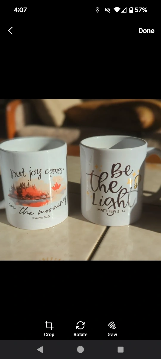 Five different unique mugs. Each features a different inspirational message. Perfect for coffee, tea, or hot chocolate. Great gift idea!