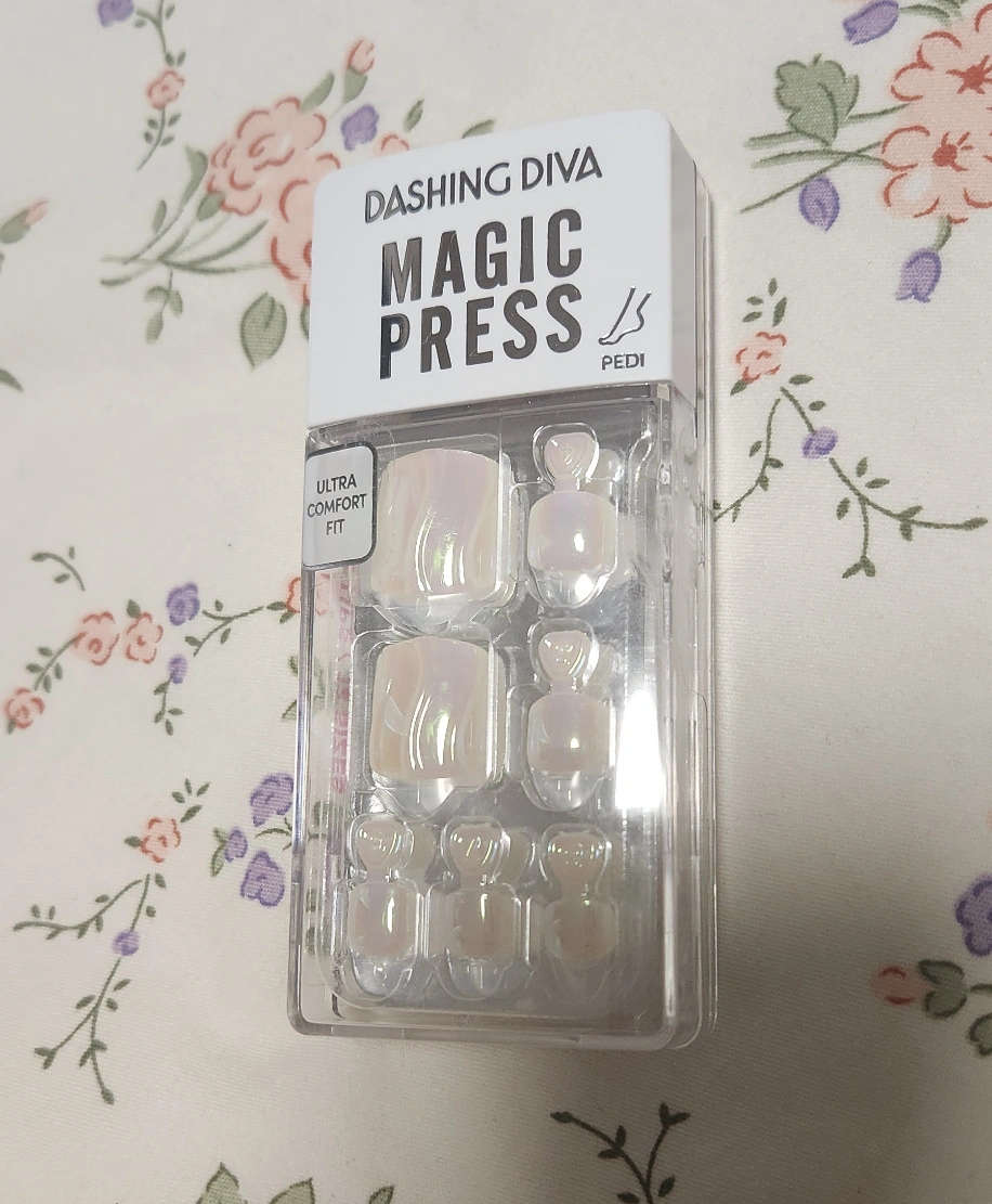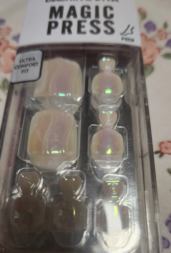 New, unopened package of Dashing Diva Magic Press pedicure nail strips. Pearl Wave design. Ultra comfort fit. Easy application.