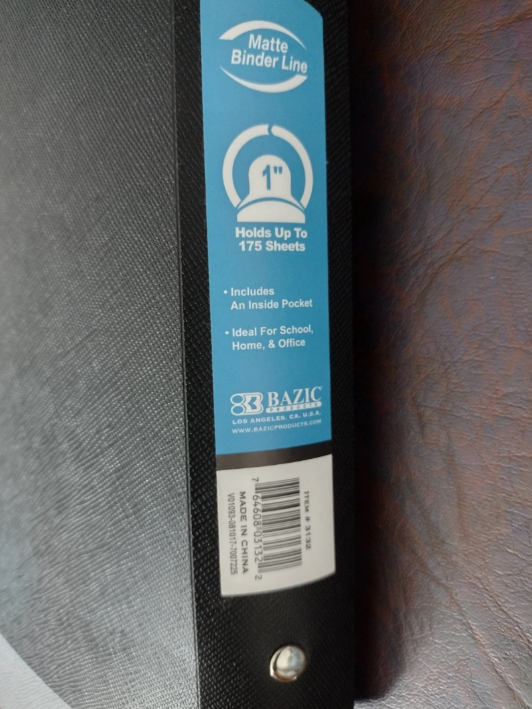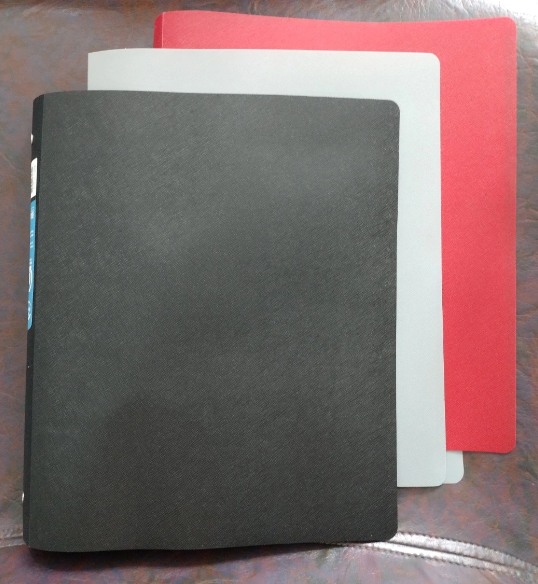 Various 1-inch binders. One black, three gray, three red. Holds up to 175 sheets. Includes inside pocket. Ideal for school, home, or office.