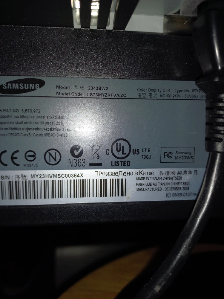Used Samsung 23" QWXGA SyncMaster 2343BWX LCD monitor.