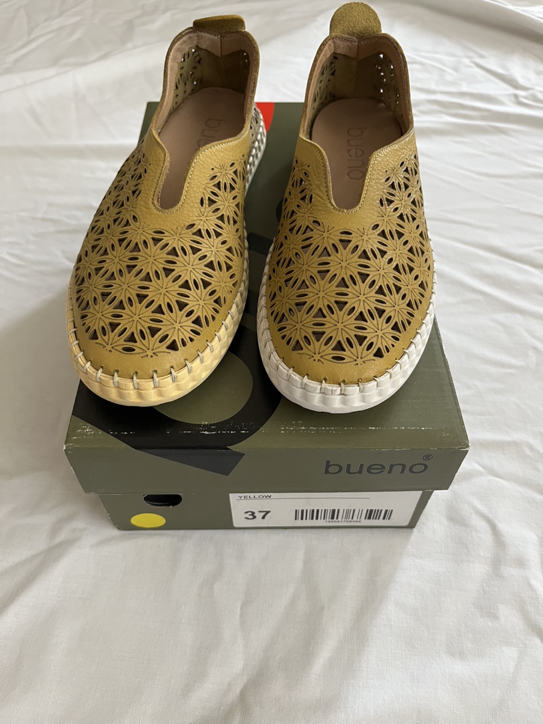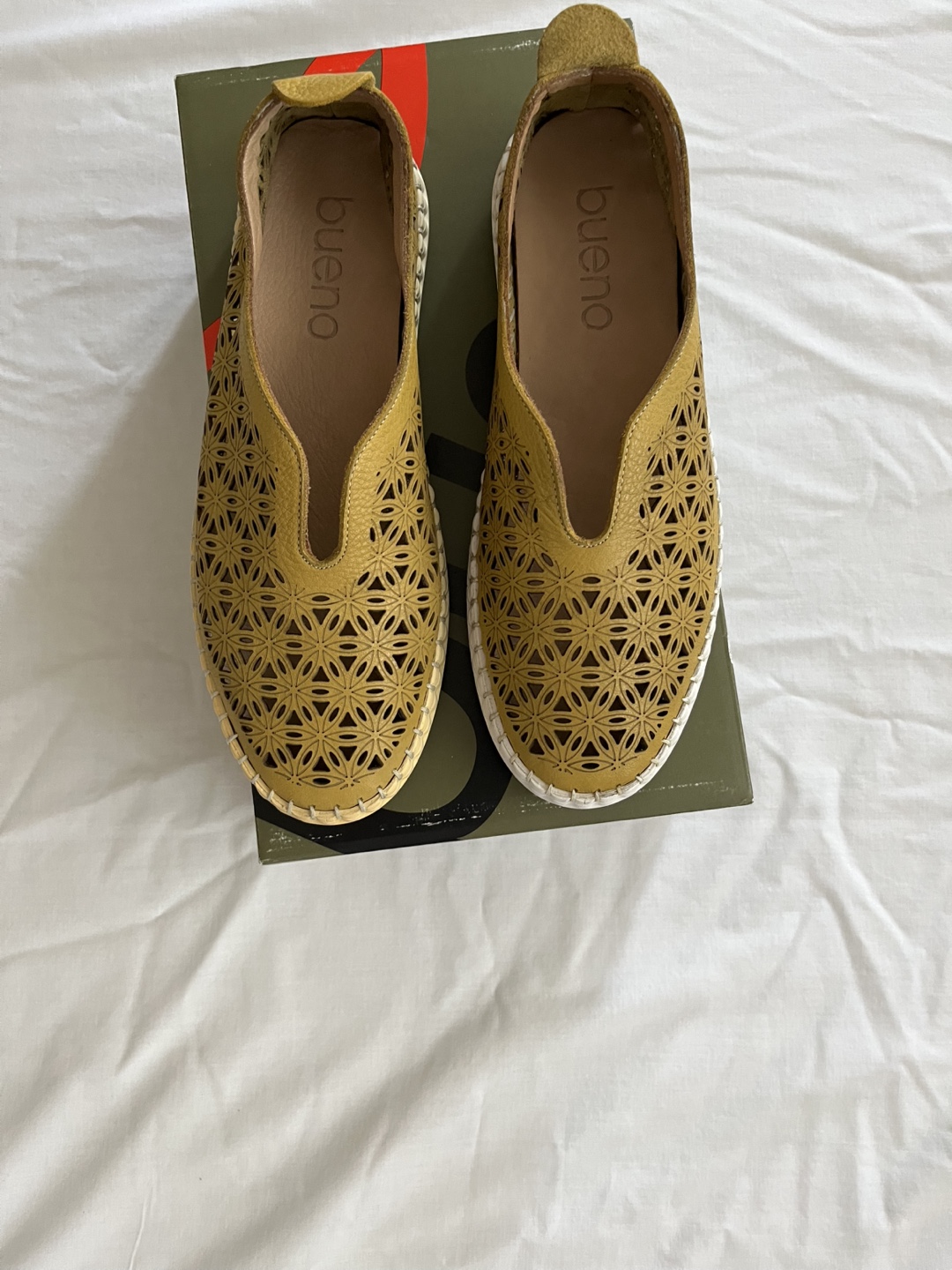 1 / 21 / 2Buy & SellBueno Women's Yellow Leather Perforated Slip-On Shoes - Size 37Bueno Women's Yellow Leather Perforated Slip-On Shoes - Size 37$40Stylish yellow leather slip-on shoes. Perforated design. Size 6.5 Come in original box.ConditionNewSize6.5BrandBuenoWHERE TO MEETSteeles & BathurstView MapSELLERverifiedLeilaBathurst Manor1469 reviews1 chats·0 favorites·46 viewsSEND CHAT TO SELLERHi Leila! I’m interested in your listing.Hi Leila! I’m interested in your listing.Get the Karrot app to chatSign In to chat