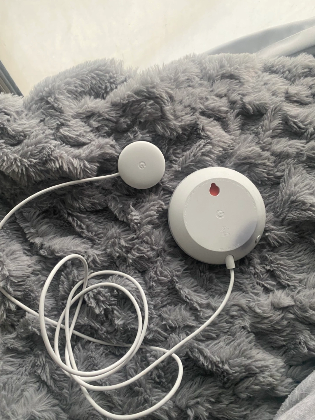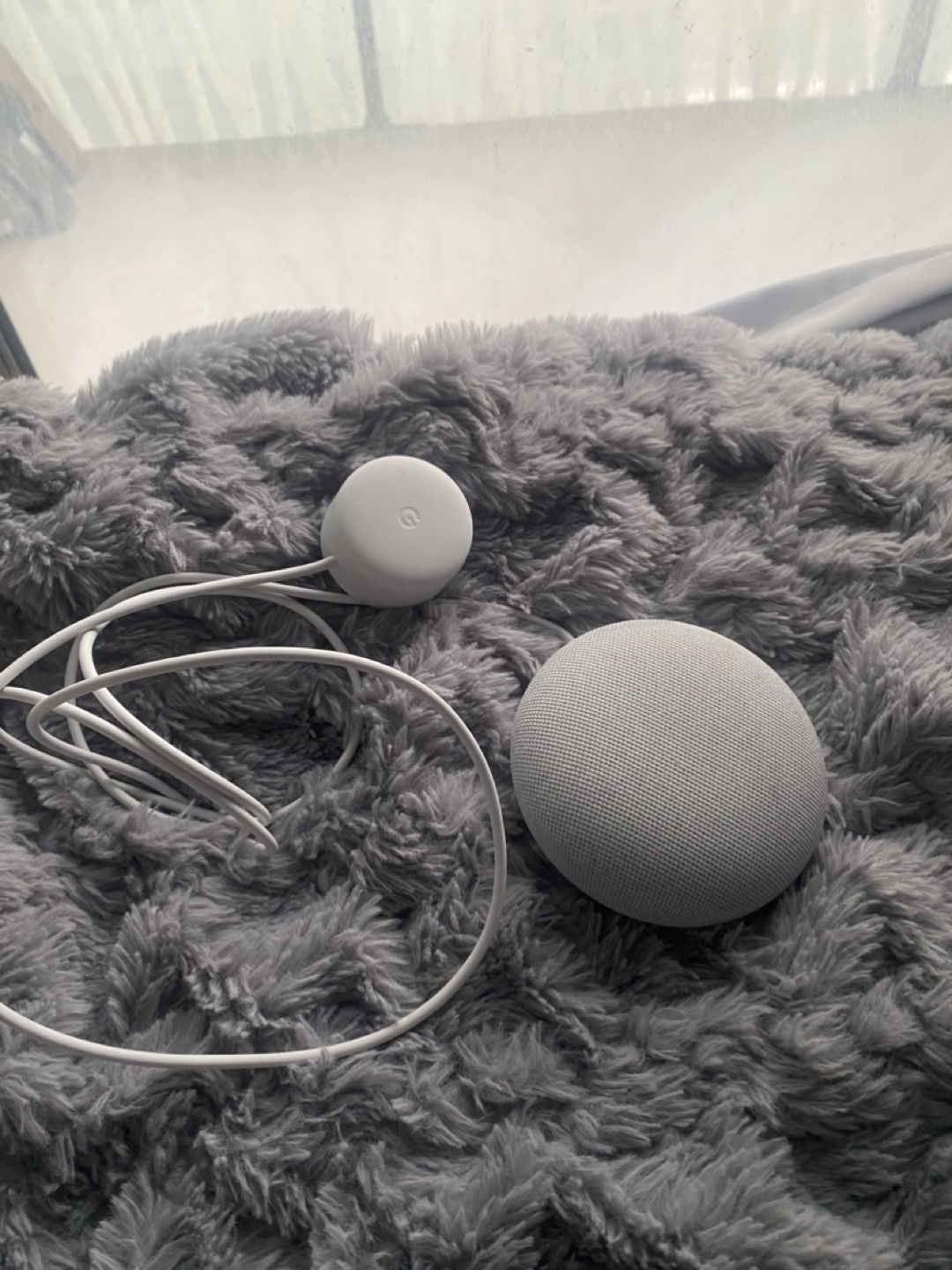 Google Home Mini Bluetooth smart speaker. Chalk colour. Works perfectly (has never been used, as I already have a smart speaker) Power cable included.
