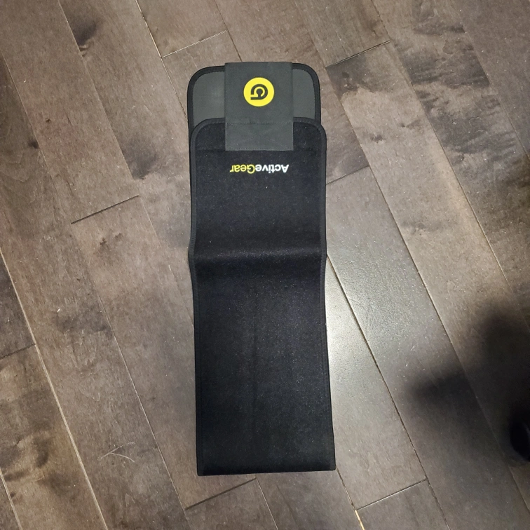 Black waist trimmer. Adjustable. Great for workouts. Also doubles as a bit of a back support for deadlifts and other weight training exercises for beginners. Pick up only.