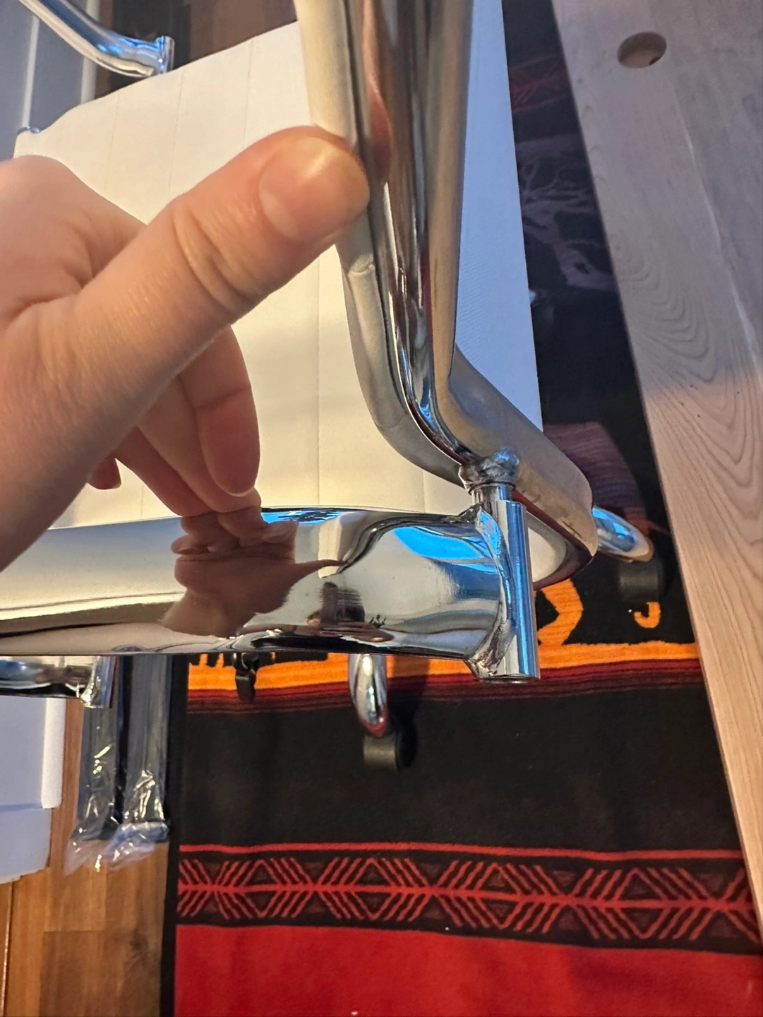 One of the chair arms gets loose easily (pictured loose in the two photos) but easily tightens. Otherwise great condition