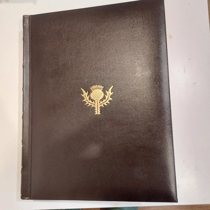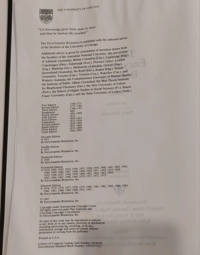 Encyclopaedia Britannica Micropedia, Volume 1. Brown leather-bound book. Ready reference. A-ak to Bayes. The outer edges of the book’s pages have a gold-plated appearance.