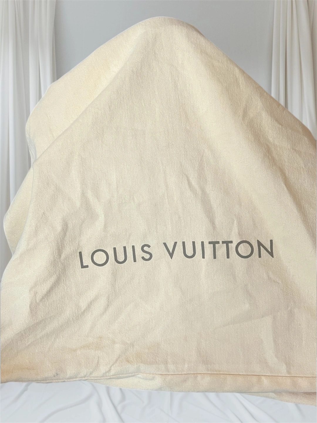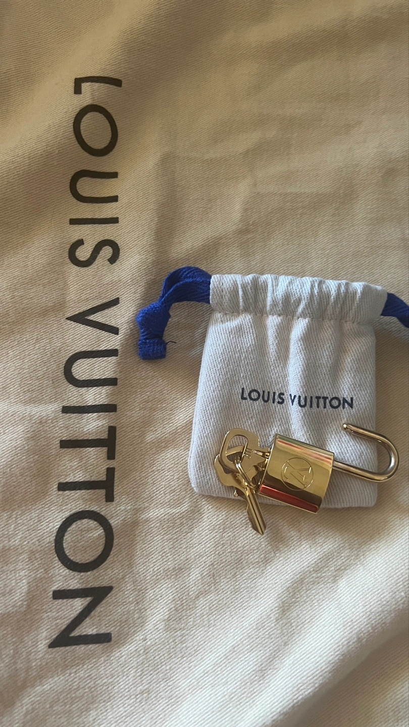 One compartment with zipper closure, another with lock closure. Interior pockets. Excellent condition.