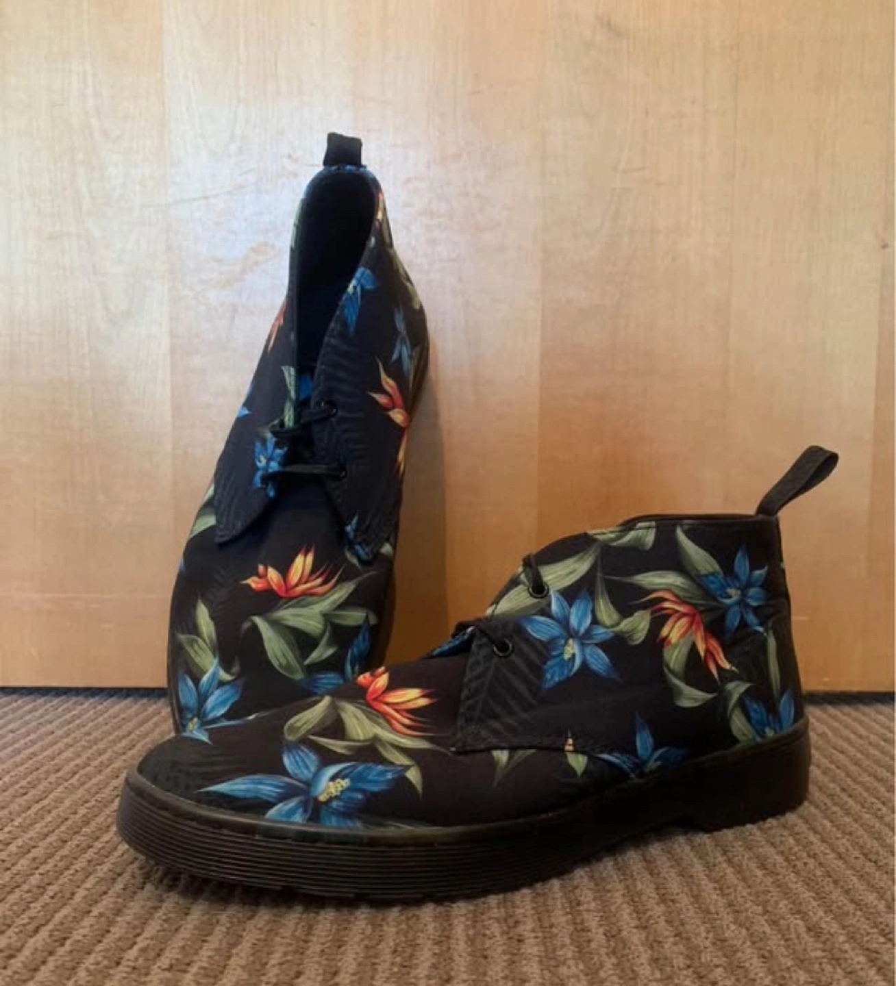 168Women's Dr. Martens chukka boots. Floral print. Lace-up closure. Black soles. Pick up at Eglinton ave east at Bayview.