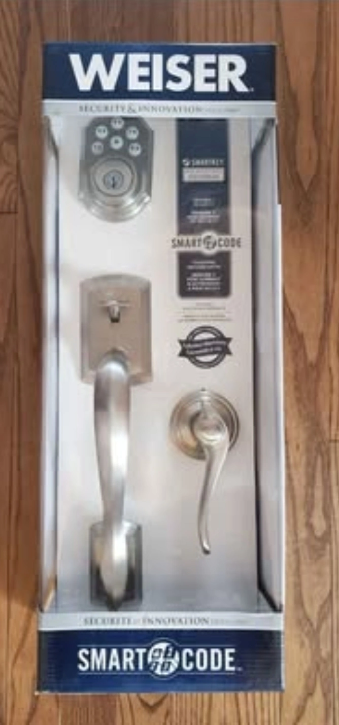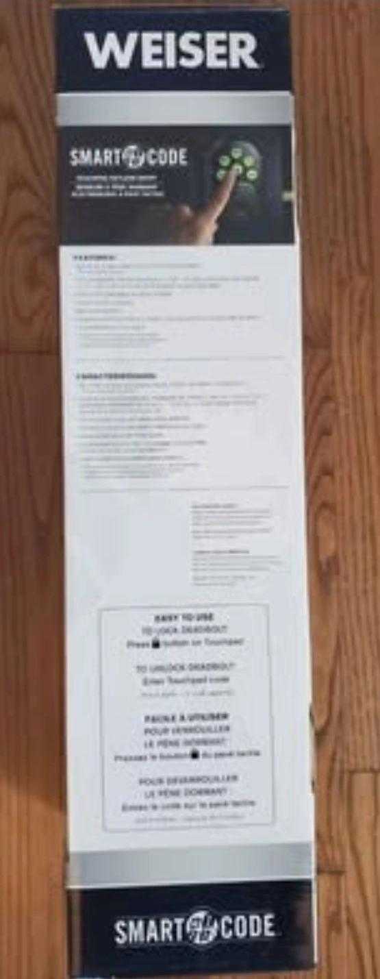Electronic lighted number. Contemporary Smartcode. Smartkey technology. Adjustable latch 2 3/8", 2 3/4". Door thickness 1 3/8" to 1 3/4". Lifetime warranty.