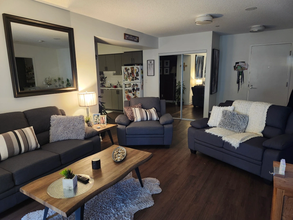 Dark Grey Fabric Sofa Set & Live Edge Coffee Table