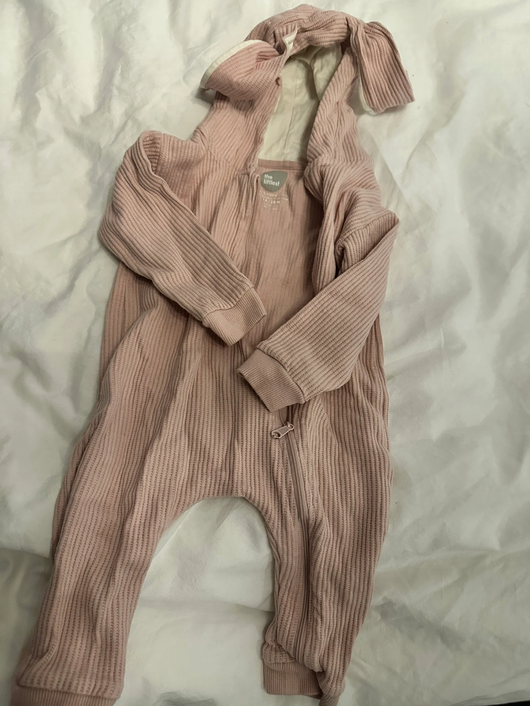 “The Littlest” Pink Bunny Baby Romper 12-18 months