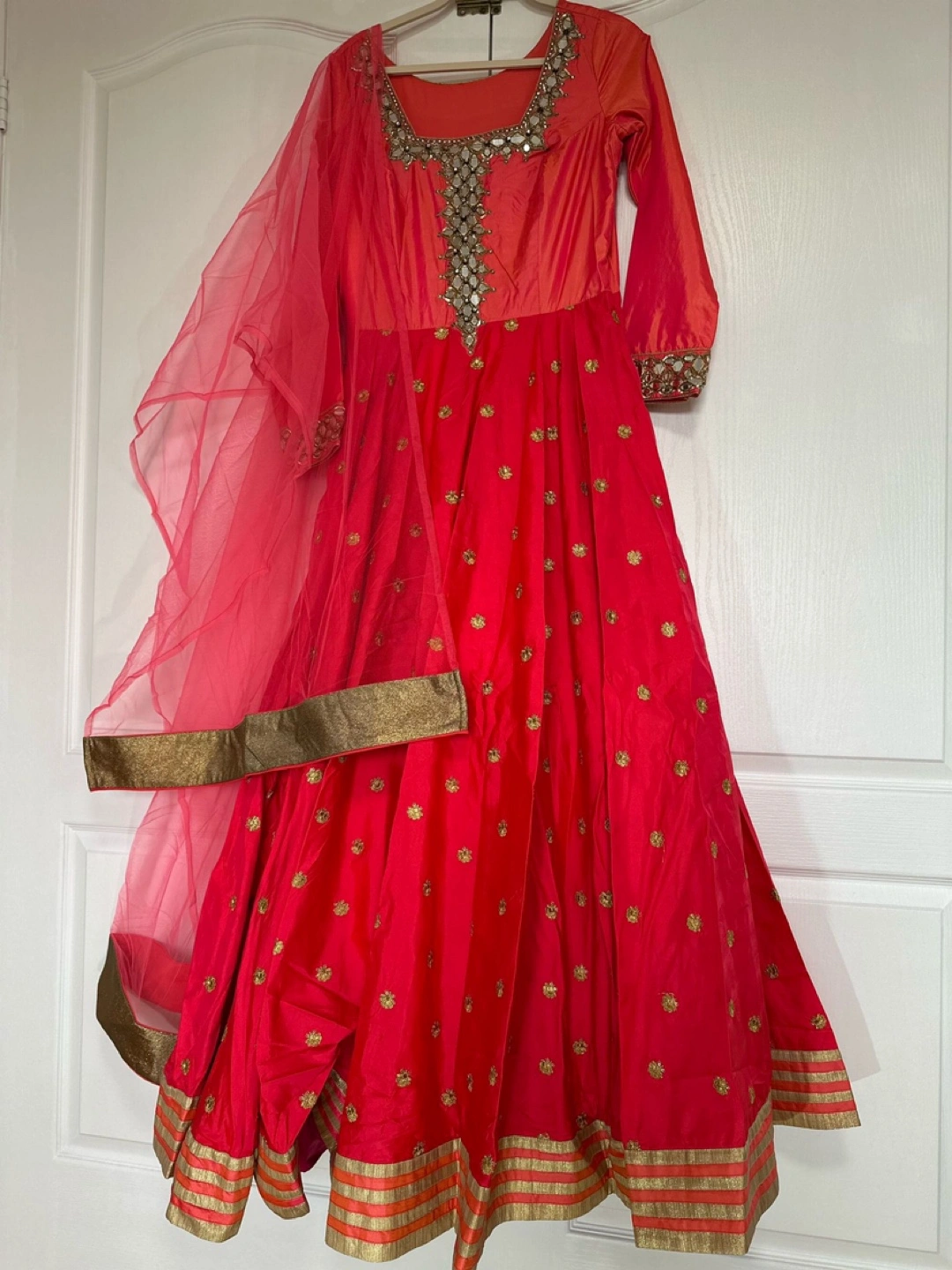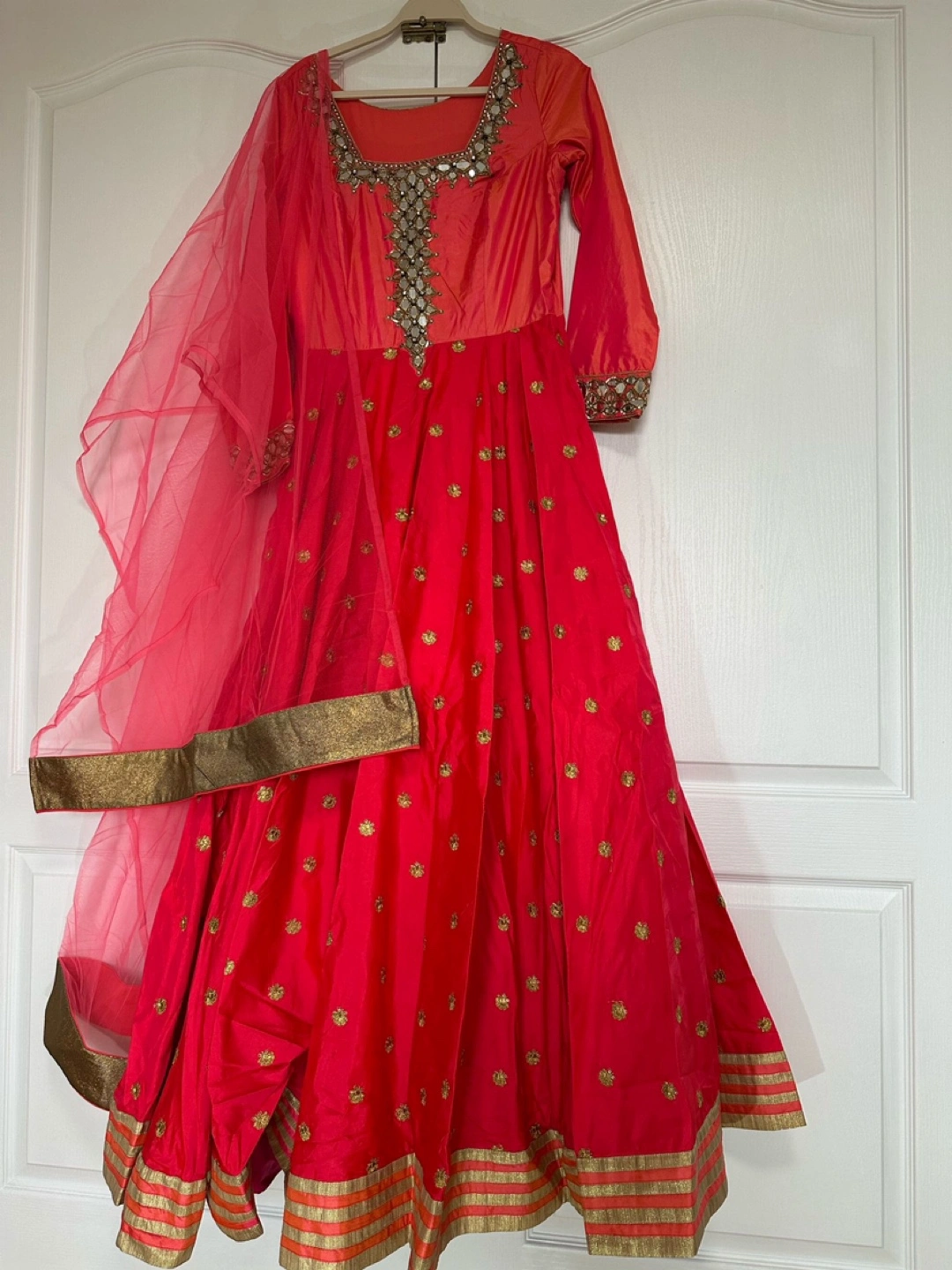 9Beautiful Anarkali suit. Three-quarter sleeves. Embroidered details. Matching dupatta. Stunning for special occasions.